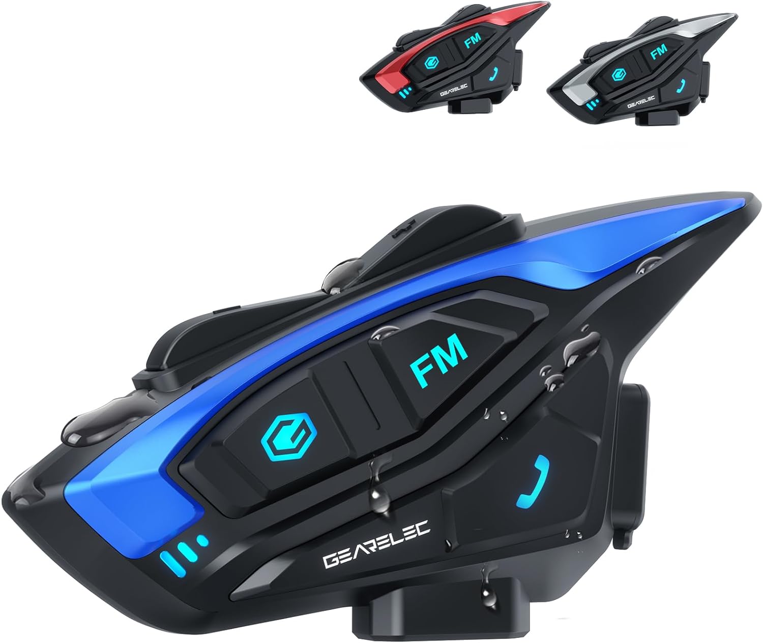 gearelec Motorcycle Helmet Bluetooth Headset [Deep Bass & Super-Noise-Reduction] Shark Pro Motorcycle Bluetooth Headset with Upgrade Hi-Fi Speakers, 2000M 8 Riders Intercom