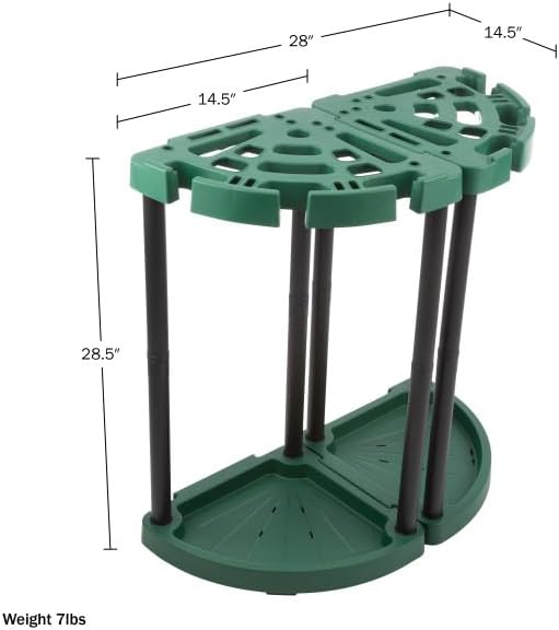 - PRODUCT DETAILS - Materials: Polypropylene Plastic. Dimensions: (L) 28β x (W) 14.5β x (H) 28.5β; Weight: 7lbs; Individual Section - (L) 14β x (W) 14.5β; 24 Storage Holes Per Tool Storage Organizer Section; 48 Storage Holes Total. Color: Green and Black.