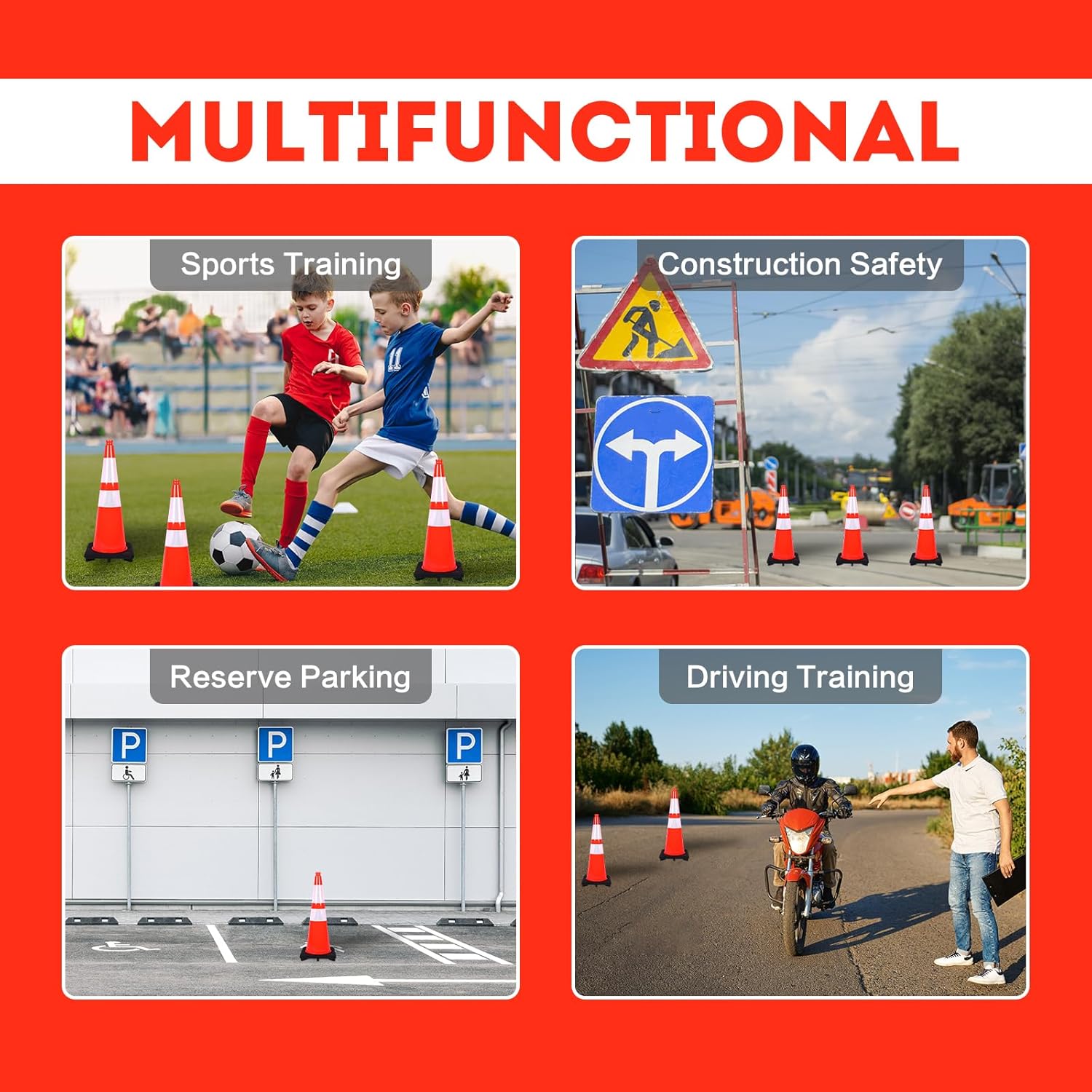 - OCCASION: Our traffic cones are suitable for individuals or public areas such as gardens, parking lots, roads, squares etc. Remind people to pay attention to warning or workspace area in your driveway or public places