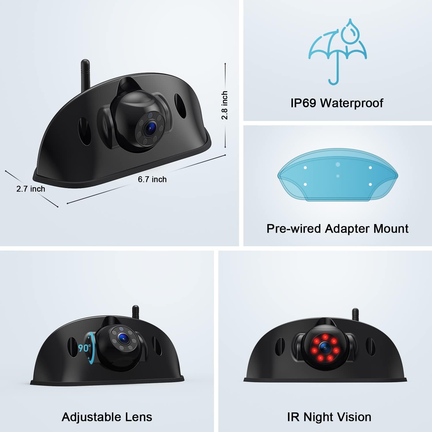 - The HD Rearview Camera has an IP69 waterproof rating and a 120-degree viewing angle, giving you the best possible viewing angle and a longer product life.