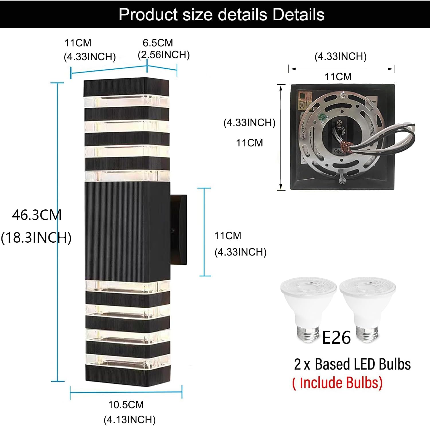 - 【Outdoor Wall Lights】 18inch Up and down porch Wall Light not only makes the outdoor wall sconce projects out the beautiful lightness, but also make your home stand out, Ideal for the front doorway, porch, garden, garage, yard.