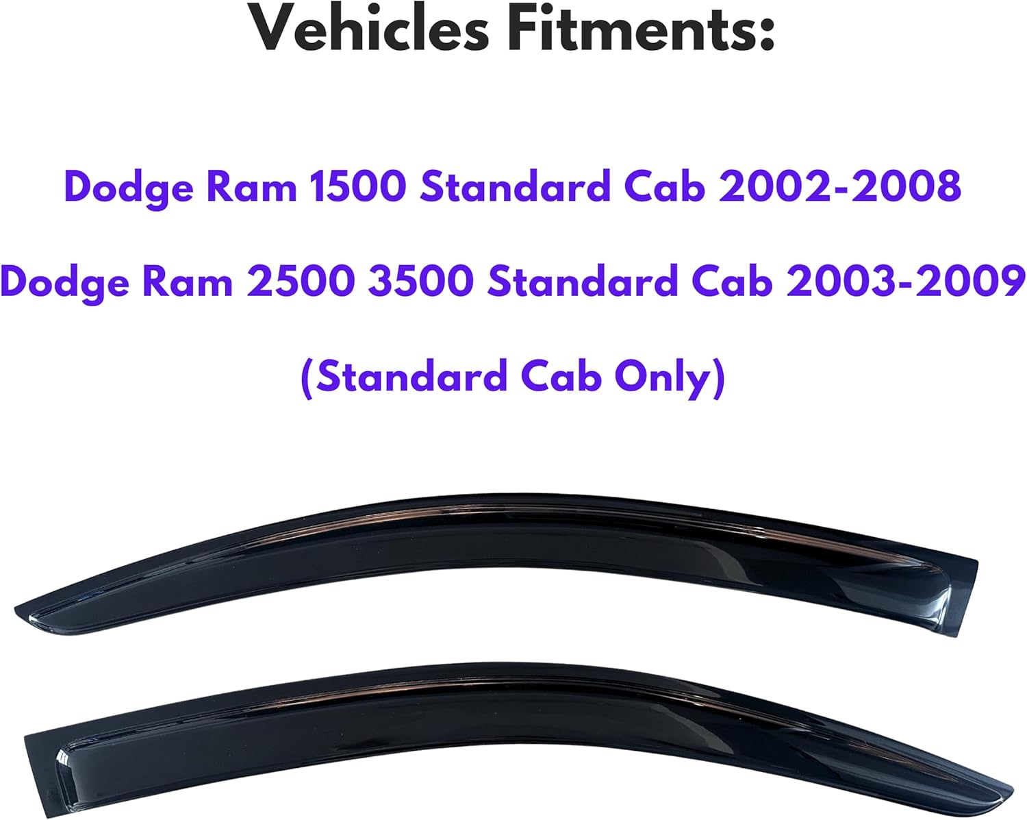 - 【Perfect Fit】KPY window visors rain guards vent deflectors compatible with 2002 2003 2004 2005 2006 2007 2008 Dodge Ram 1500, 2003 2004 2005 2006 2007 2008 2009 Dodge Ram 2500 3500. (For Standard Cab only)