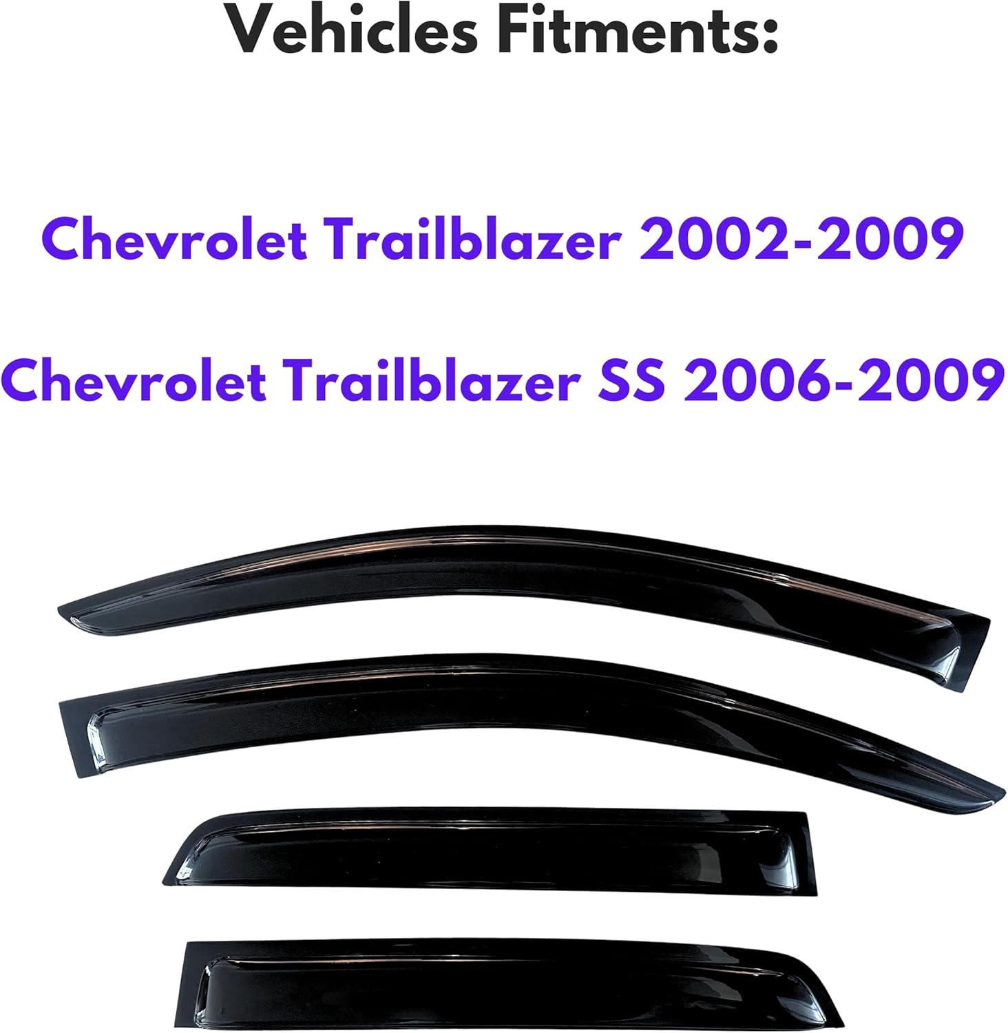 KPY Window Visor Compatible with Chevrolet Chevy Trailblazer 2002-2009 & Trailblazer SS 2006-2009, 4PC Rain Guard Side Window Vent Deflectors Tape-On Style, 2002 2003 2004 2005 2006 2007 2008 2009