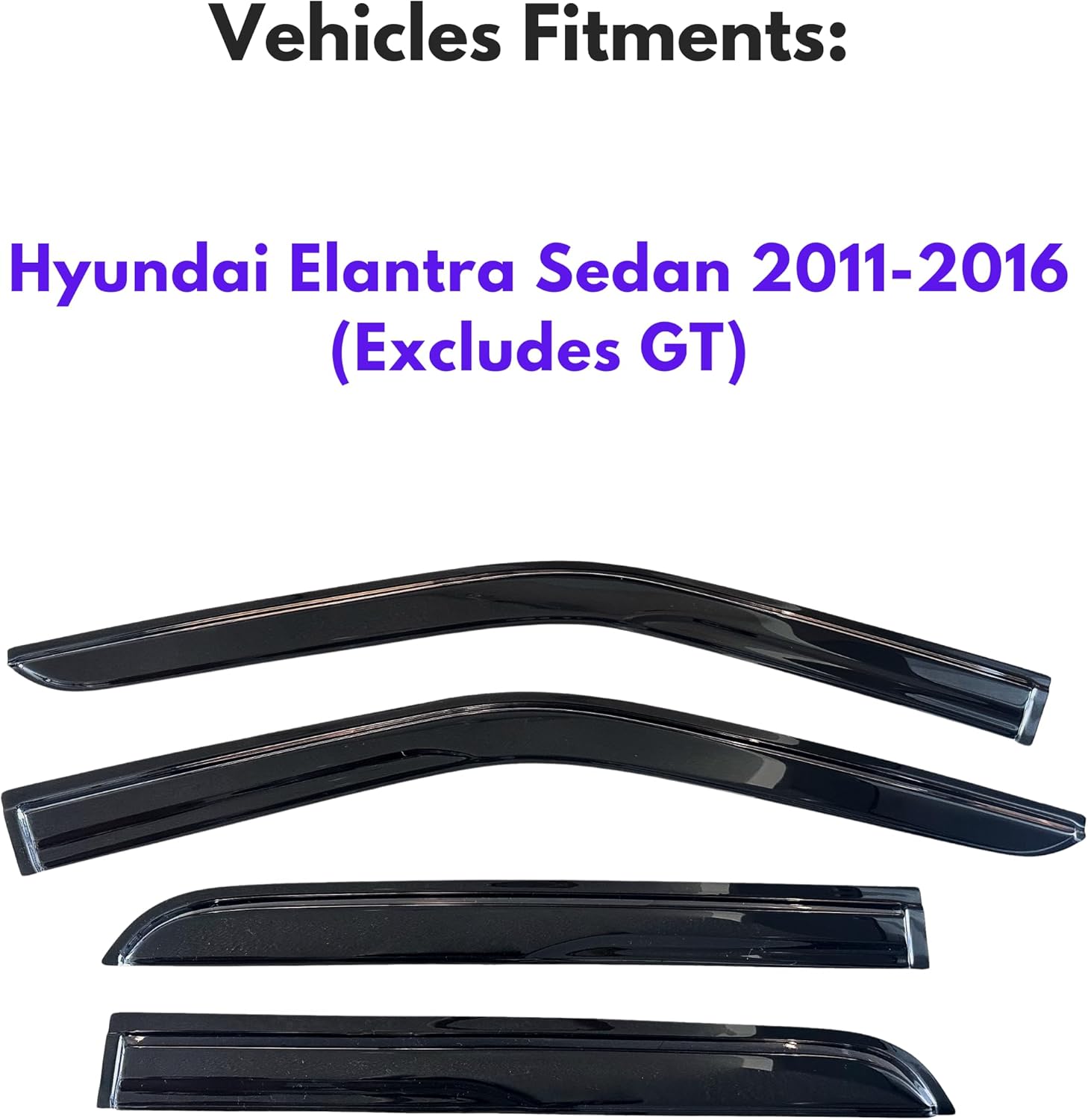 KPY Window Visor Compatible with Hyundai Elantra Sedan 2011-2016 (Excludes GT), 4PC Rain Guard Side Window Vent Deflectors Tape-On Mugen Style, 2011 2012 2013 2014 2015 2016