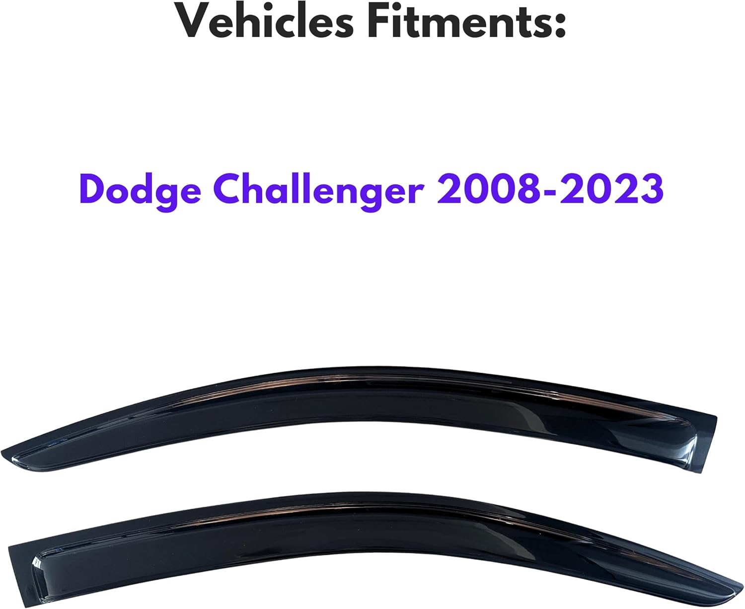 KPY Window Visor Compatible with Dodge Challenger 2008-2023, 2PC Rain Guard Side Window Vent Deflectors Tape-On Style, 2008 2009 2010 2011 2012 2013 2014 2015 2016 2017 2018 2019 2020 2021 2022 2023