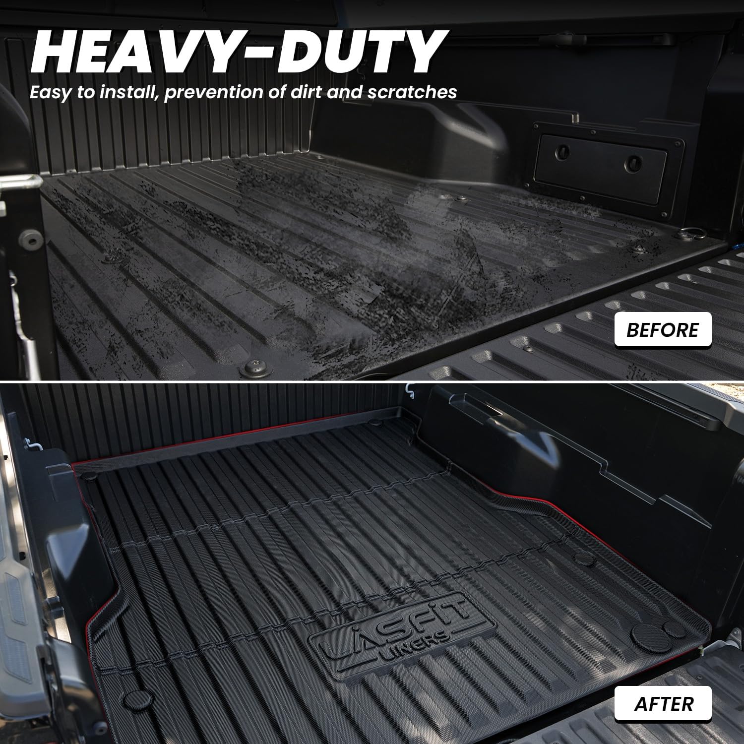 - ALL WEATHER PROTECTION - Lasfit 2024 Tacoma Trunk Bed Mats Shield your floor from dirt, mud, salt, rain, snow, and even hot summer temperatures. Cleaning up daily wear and tear off our car mats is a breeze.