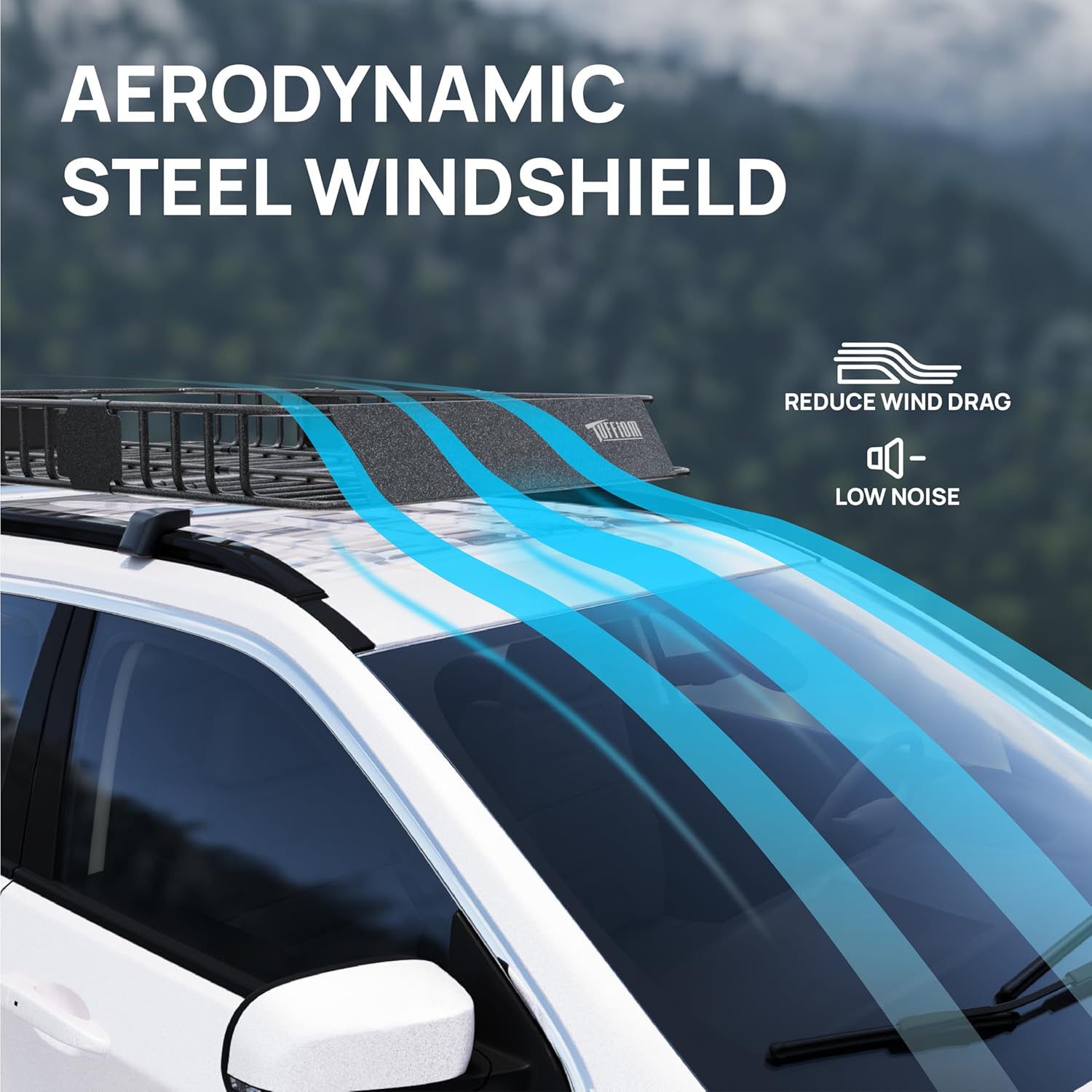 - 【Enhanced Security】Features a wind shield forward protect cargo from wind damage and reducing wind resistance. Sturdy bottom that can keep your items secure during traveling