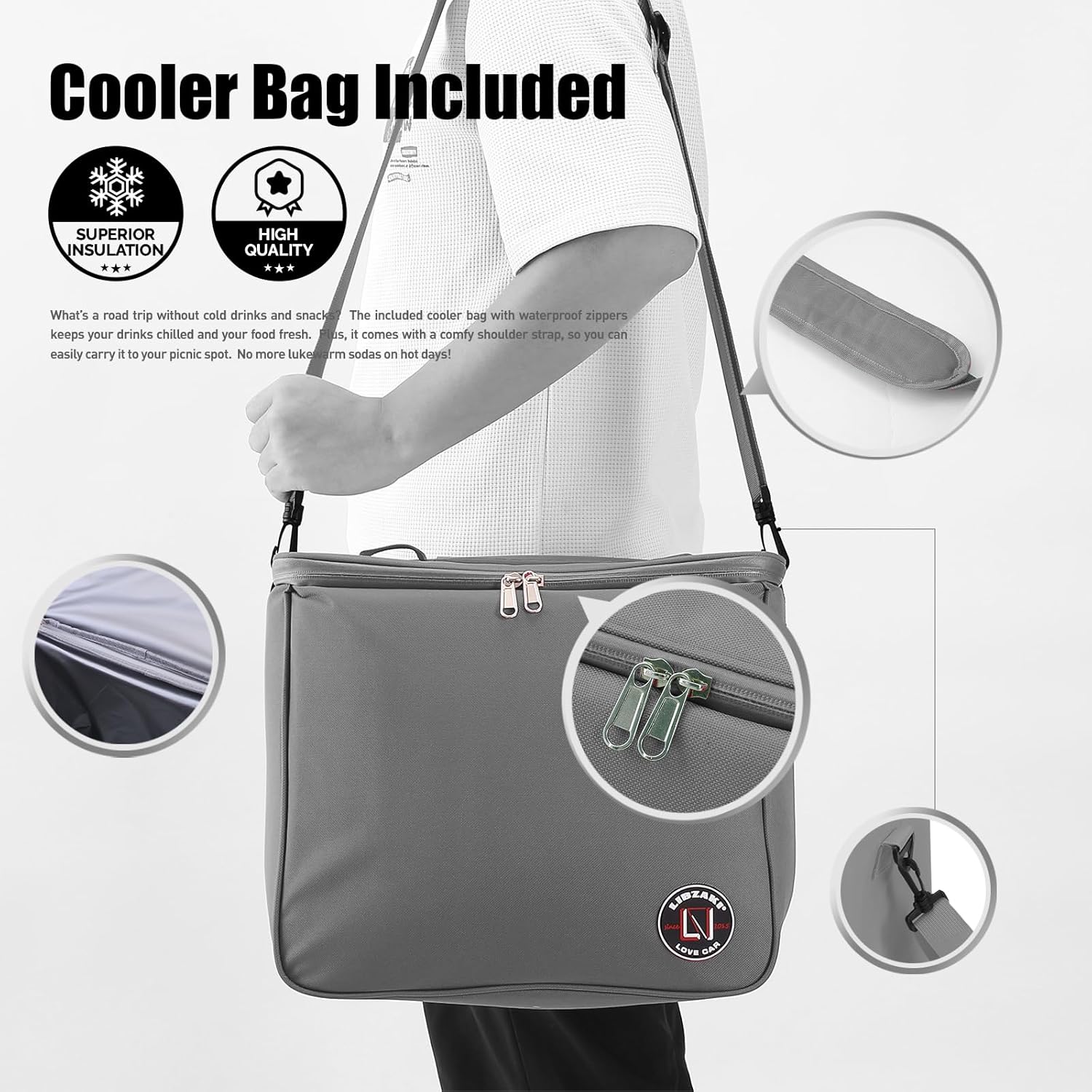 - Detachable Ice Bag: The trunk organizer includes a detachable ice bag, which can be carried on the back or shoulder. It keeps food warm or cold for 8-24 hours with its waterproof zipper and high-quality interior. Ideal for kayaking, beach trips, and camping, it keeps ice and drinks cool for a refreshing trip.
