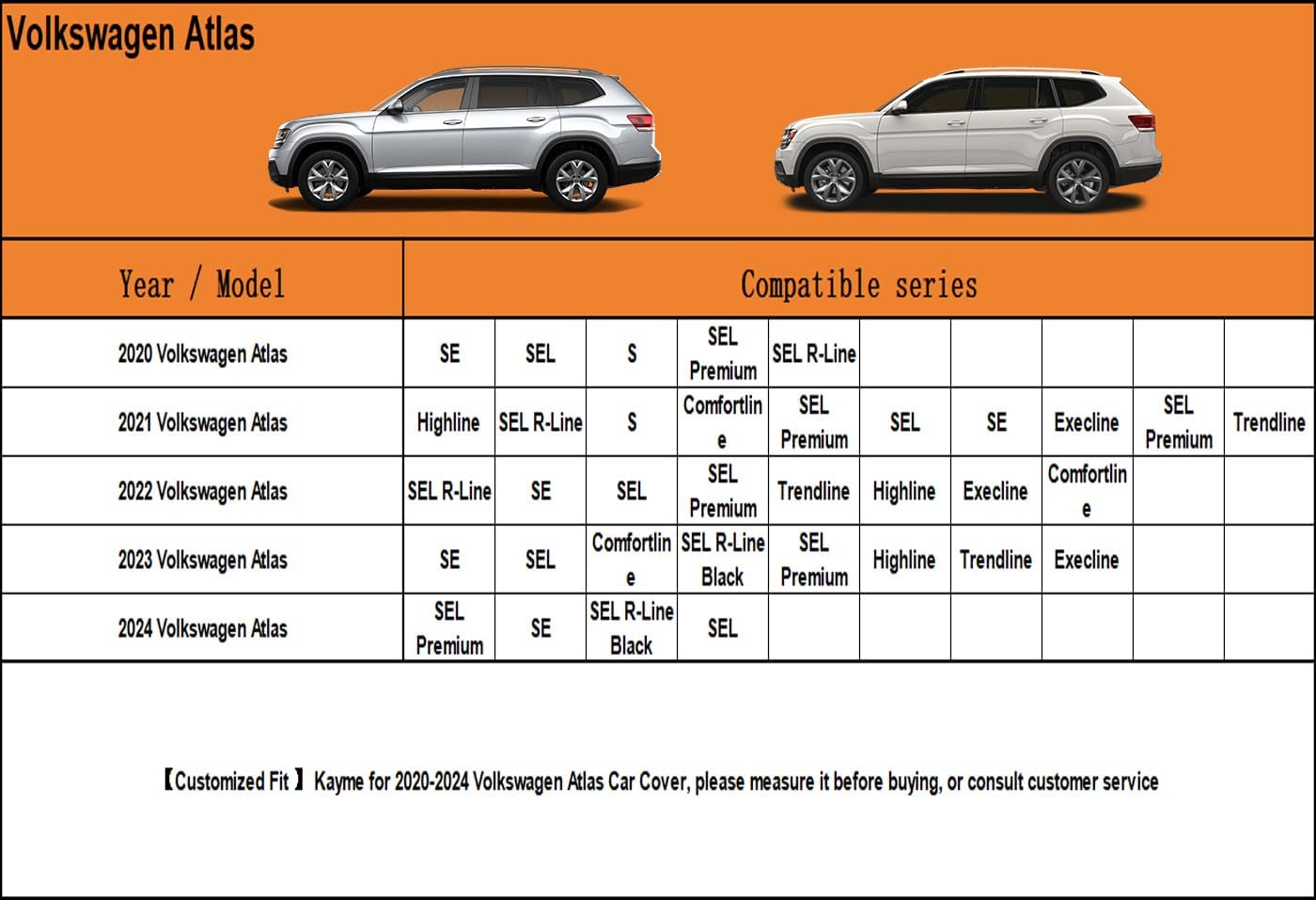 - ăSuitable forăâ Custom fit for VW Volkswagen Atlas (2020-2025) . Come with a large enough portable bag to store your cover when you do not use