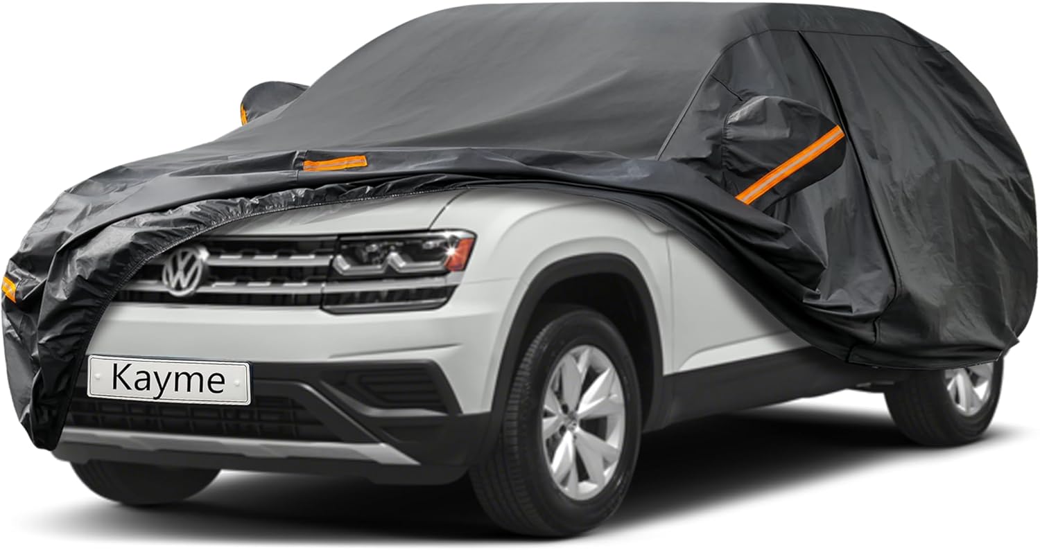 Kayme 7 Layer SUV Car Cover Custom Fit for Volkswagen VW Atlas (2017-2025) Waterproof All Weather for Automobiles, Outdoor Full Cover Sun Rain UV Protection.Black