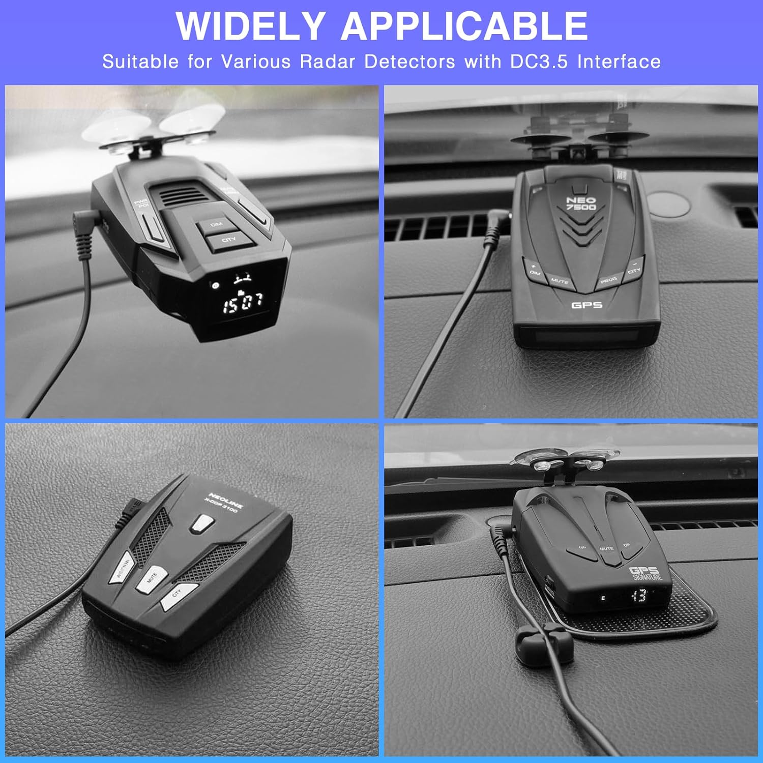 - 【Widely Fitment】Easily Connect multiple types of Radar Detectors including RAD 350/380/450/480i/XRS9370/XRS955/XRS5300/XRS7700/DFR1/DFR3/DFR5/Whistler/Radenso Pro M and other DC3.5 Plug radar detectors.