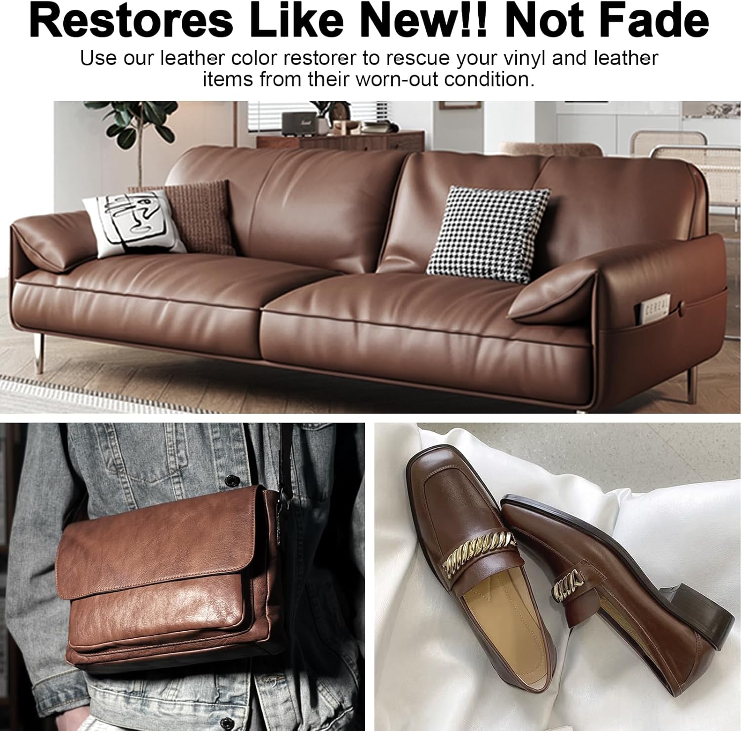 - [ Leather Color Restorer] Ideal for restoring color to faded and scratched leather. Super easy to use, it's easy to restore leather sofas, leather upholstery, or any genuine and fake leather product