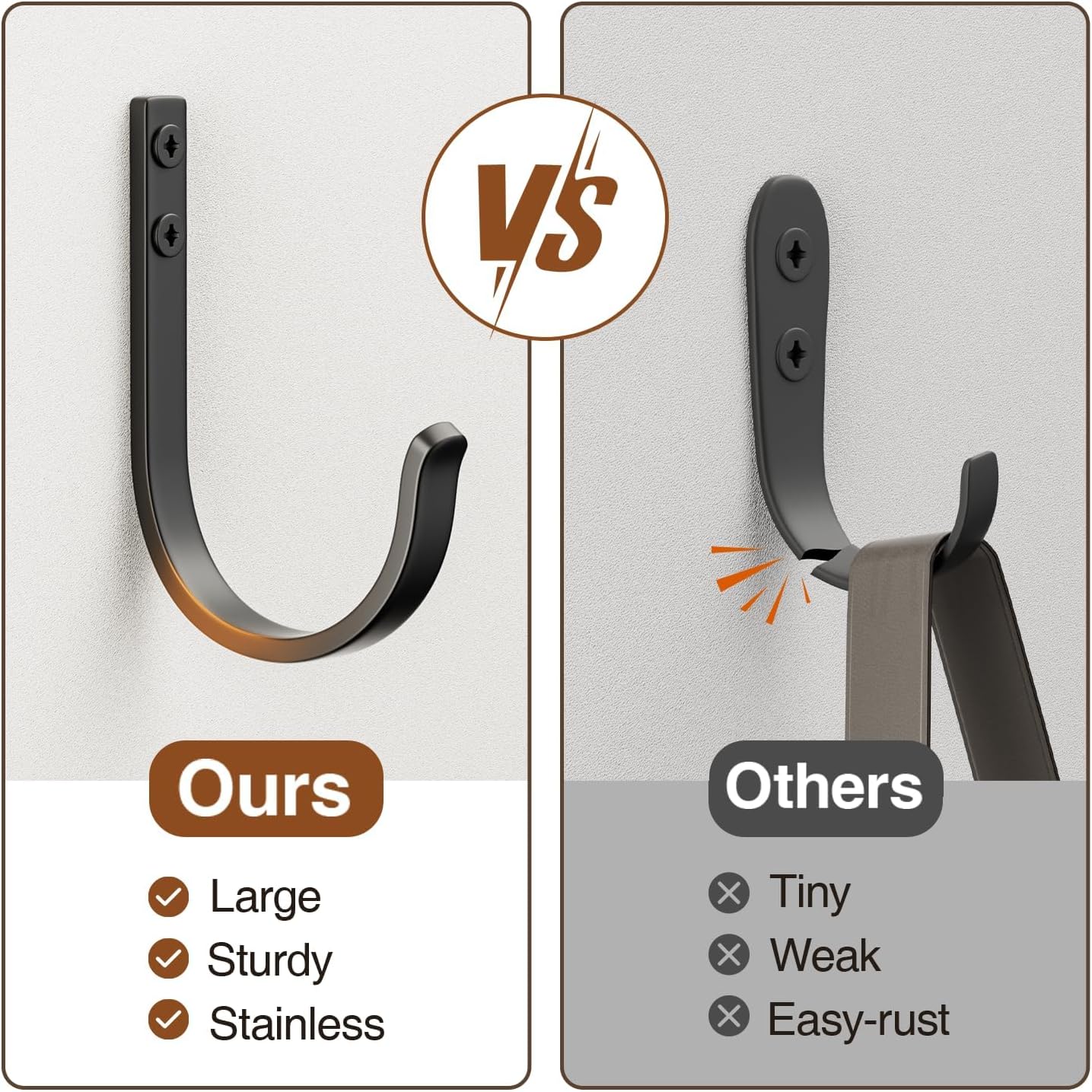 10-Pack Wall Hooks for Hanging Towel/Coat - 22LB Screw in Metal Hanger Wall Mount, for Outdoor, Closet, Door, Bathrooms, for Backpack, Robe, Black