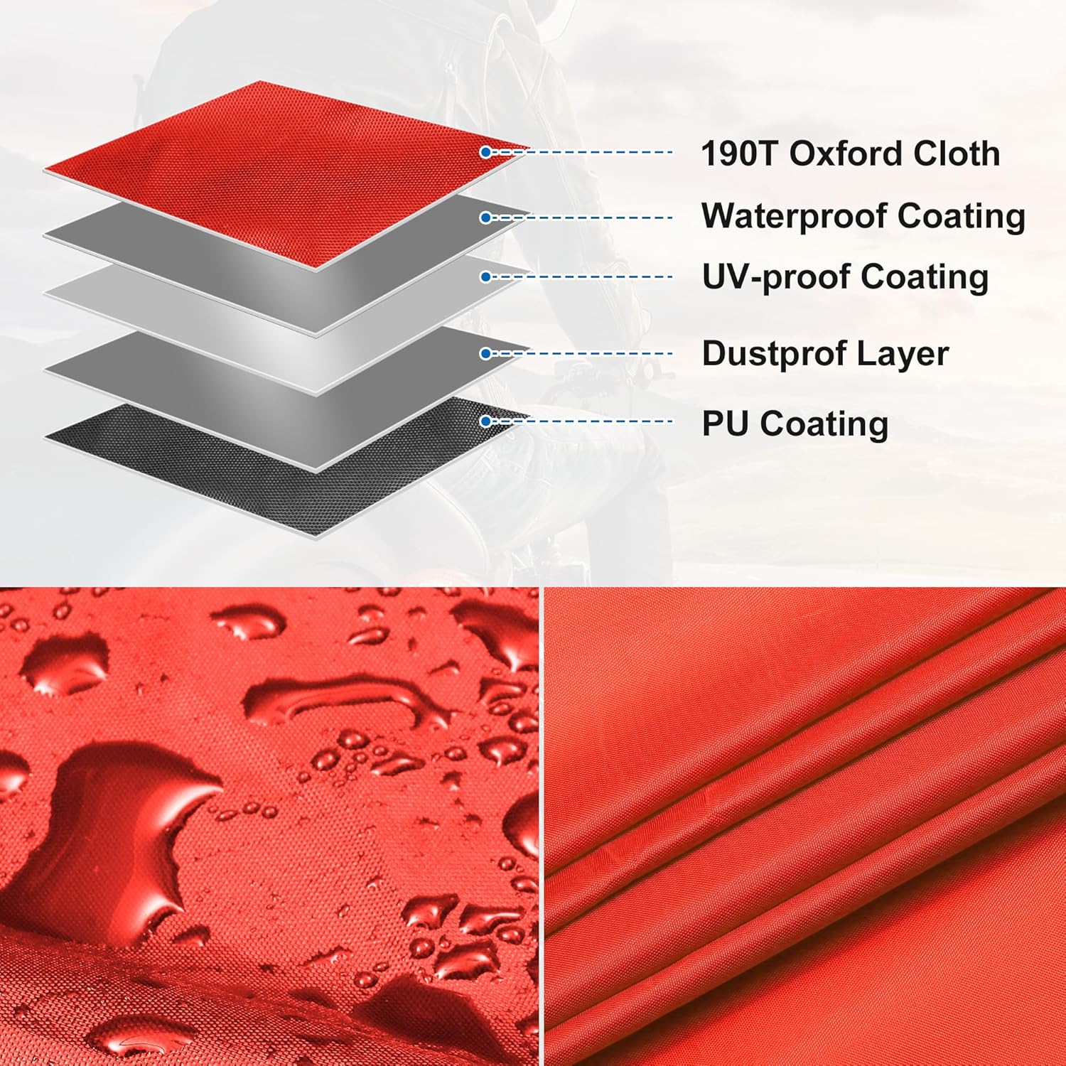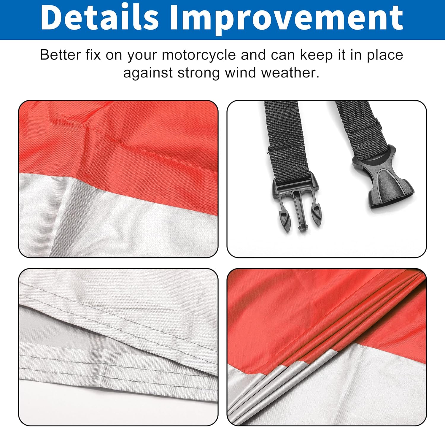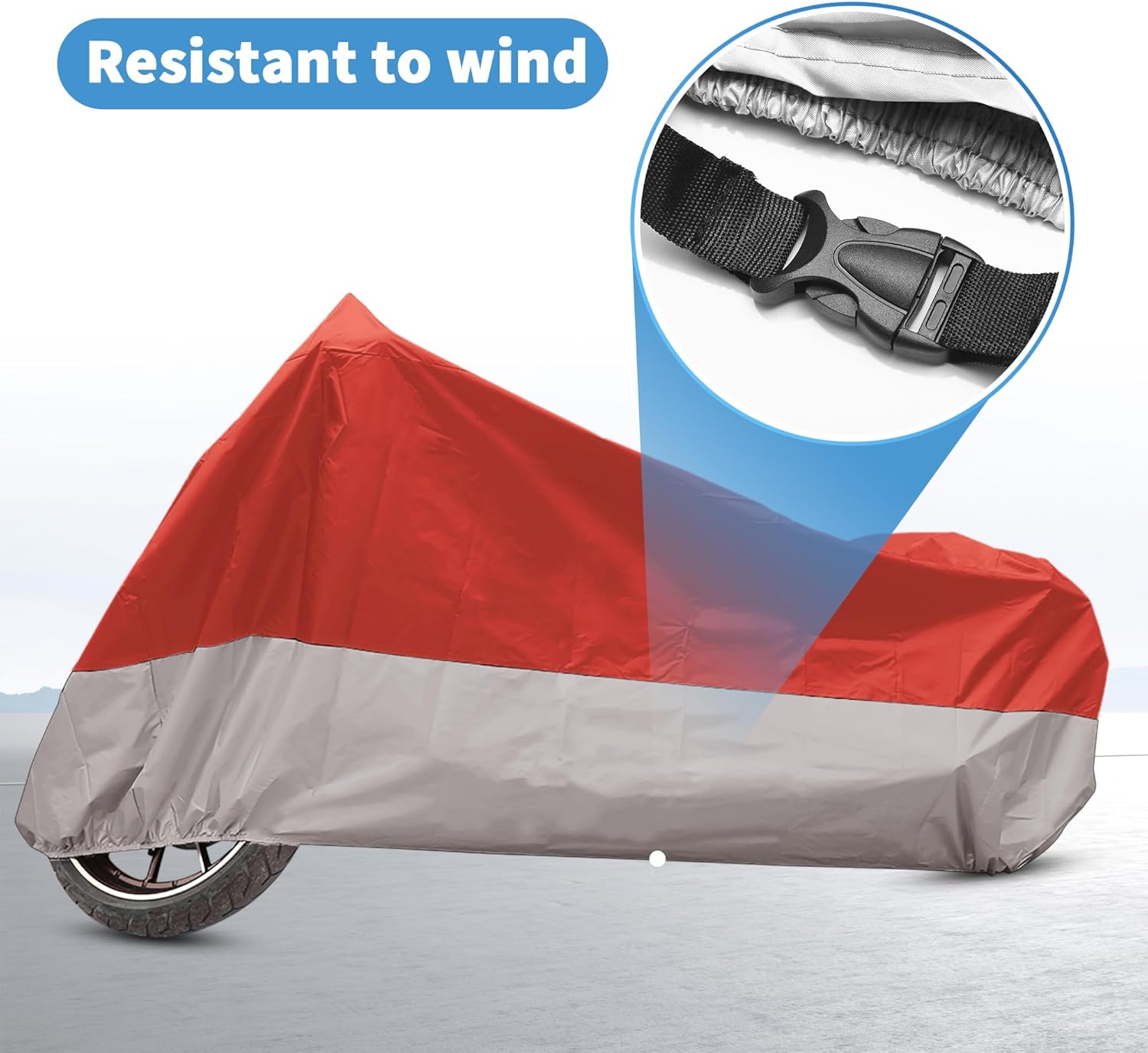X AUTOHAUX Motorcycle Cover for Harley Davidson for Honda for Suzuki All Season Weather Waterproof Sun Motorbike Cover Fits Up to 78.74'' Motorcycles Vehicle Cover M Red Silver Tone