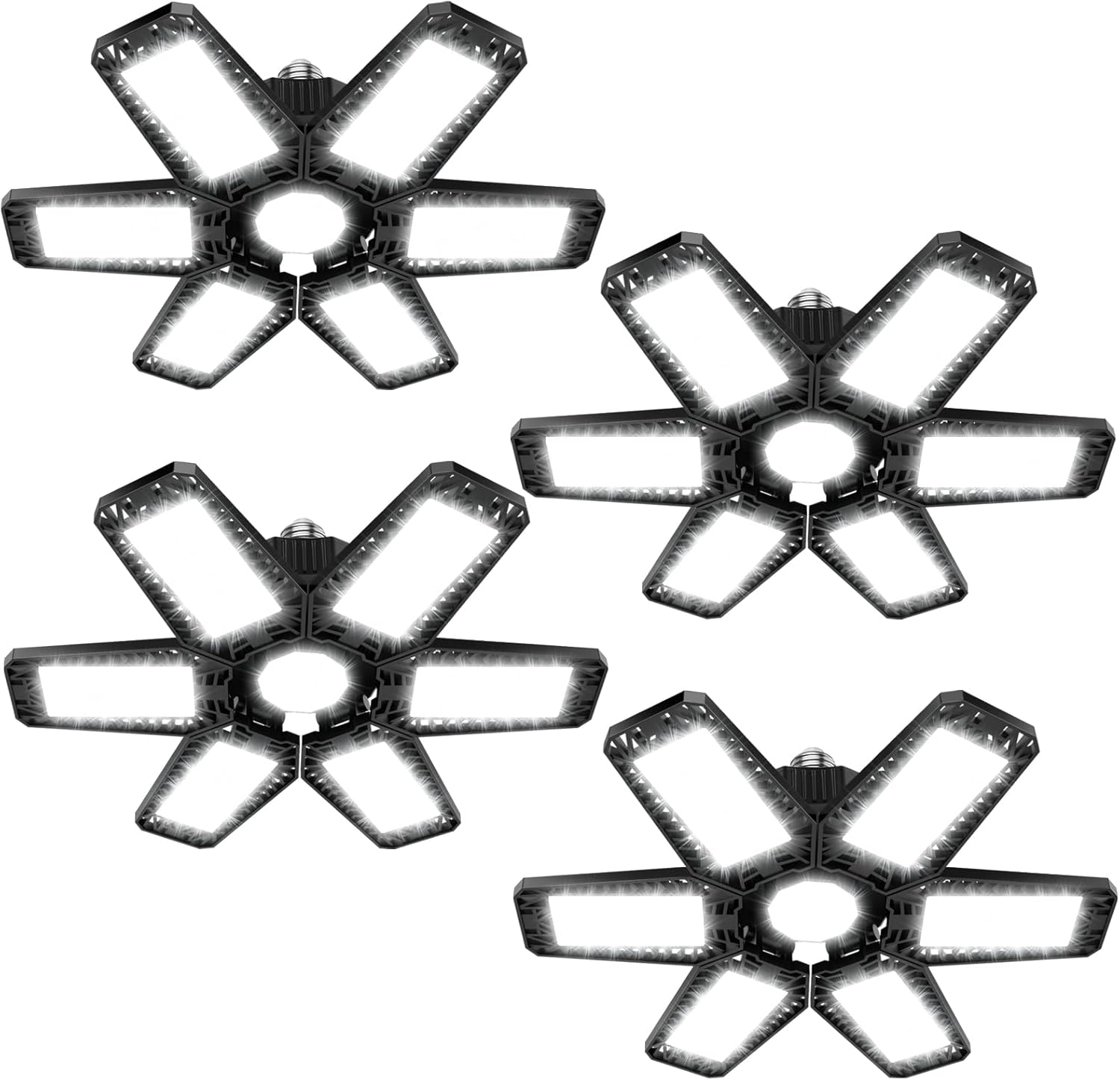 ISKYDRAW Garage Lights - 4 Pack 200W Garage Lights Bulb Bright 20000LM 6500K Garage Light Ceiling LED with 6 Deformable Panels, E26 E27 Socket Screw in Shop Lighting for Basement Barn Attic