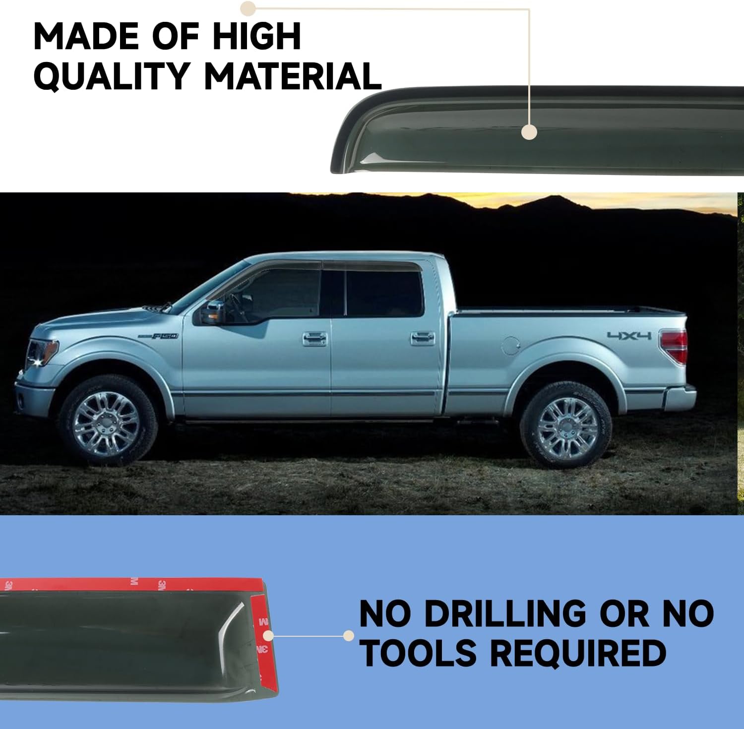 - Perfect Fit: CHYKORLA window visor rain guards wind deflectors compatible with Ford F150 SuperCrew Cab (4 full-size doors) 2009 2010 2011 2012 2013 2014, Please check your vehicle's compatibility to ensure proper fitment