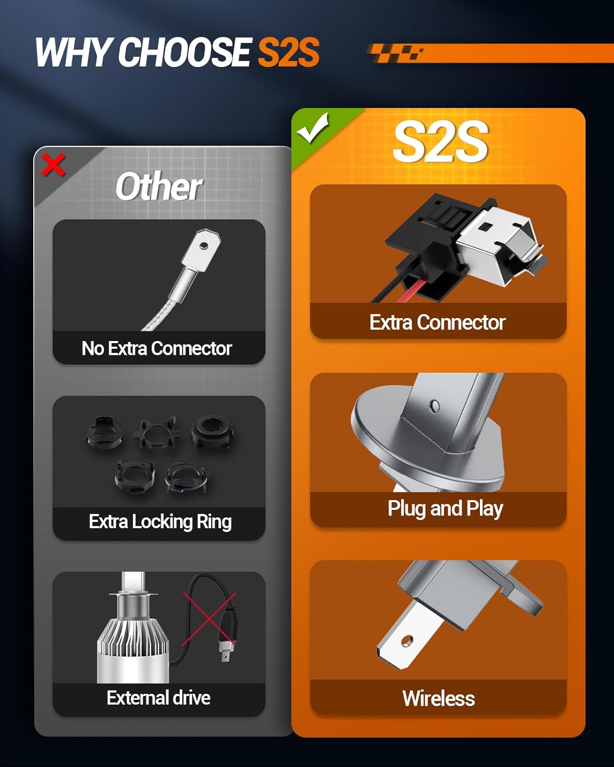- 99% Vehicles Compatible: Sealight S2S H1H7 LED bulb ensures seamless integration with 99% of the vehicle system. Their optimized wattage closely mimics the inventory of light bulbs, effectively reducing Canbus errors, flickering and radio interference