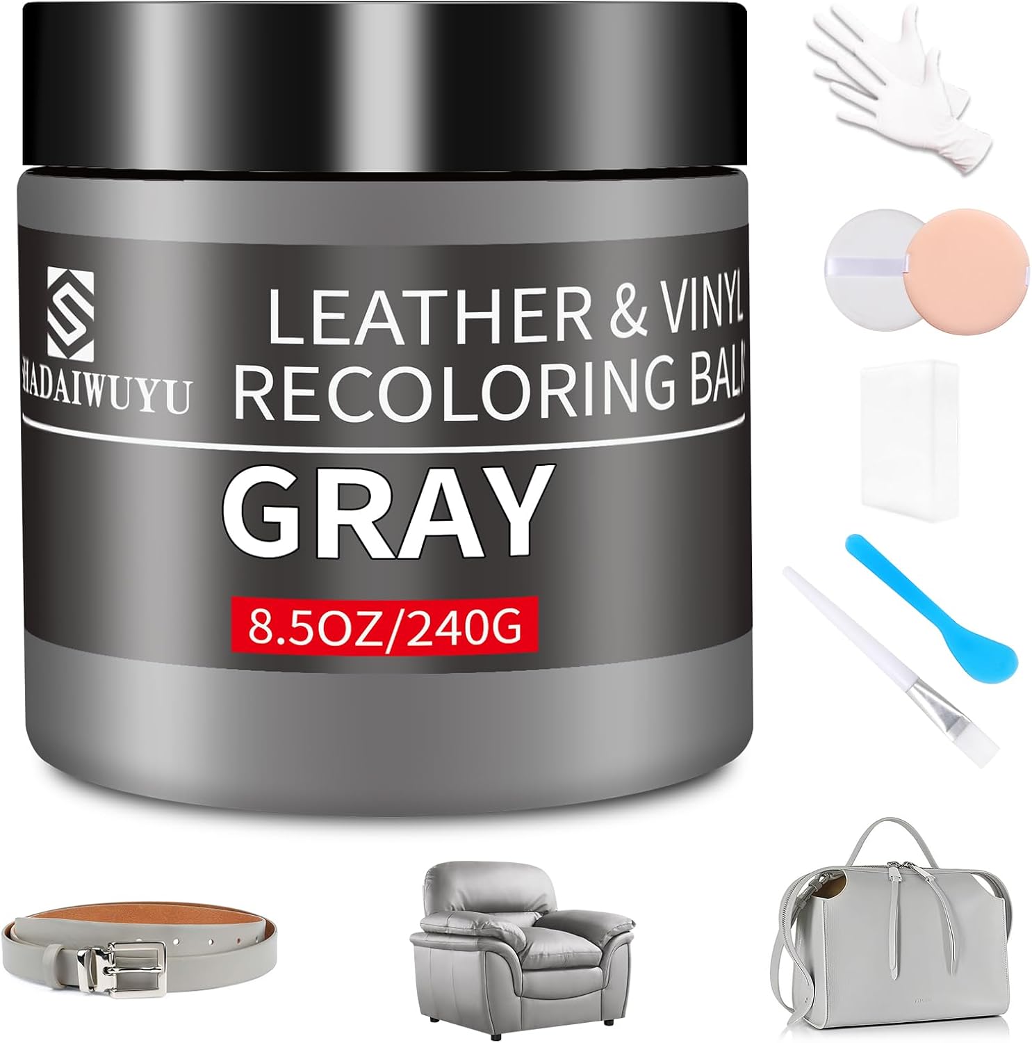 Leather Recoloring Balm,8.5oz Leather Color Restorer,Gray Leather Repair kit for Furniture and Car Interior,Leather Couch Scratch Repair,Leather Dye Paint for Faded,Cracked and Damaged Leather