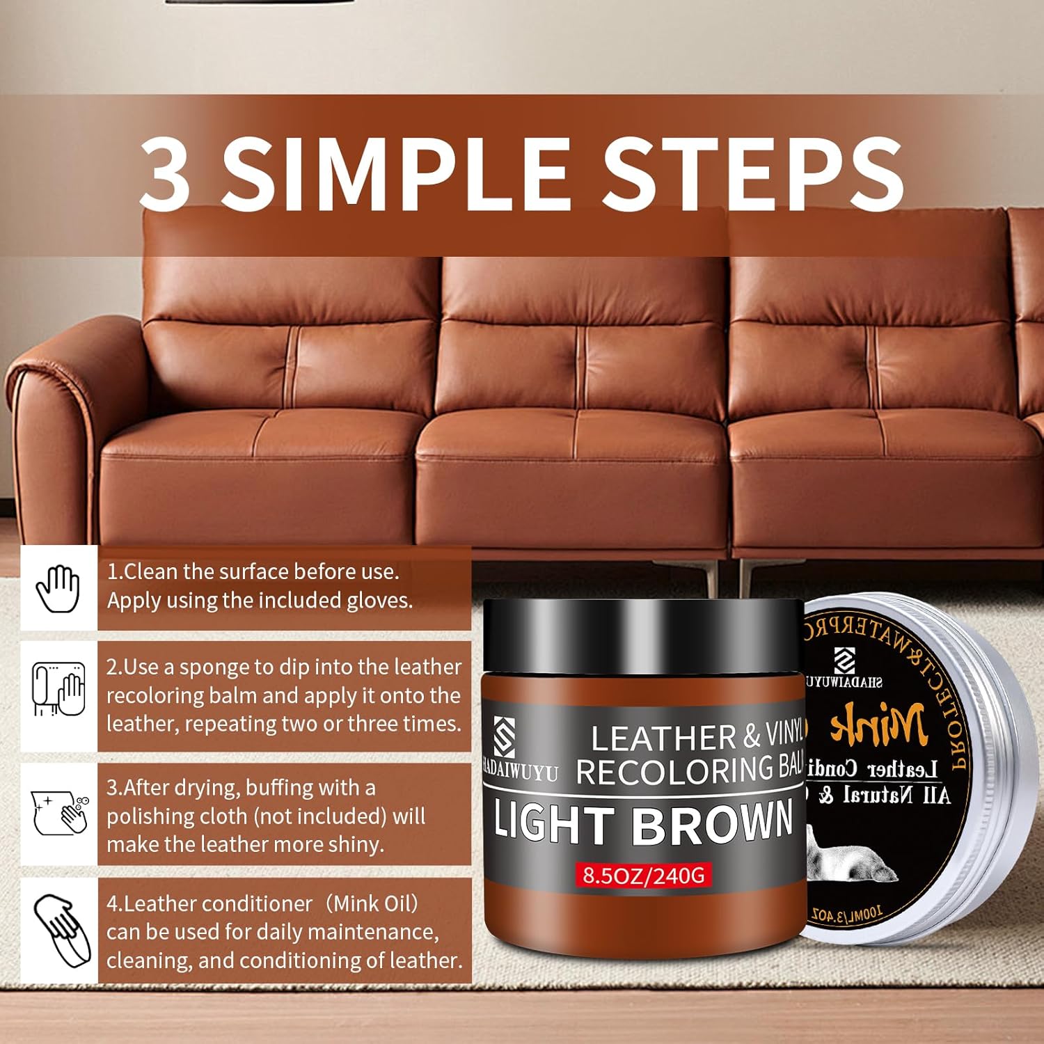 8.5oz Leather Recoloring Balm with 100ml Mink Oil,Light Brown Leather Repair kit for Furniture and Car Interior,Leather Couch Scratch Repair,Leather Dye Paint,Mink Oil for Leather