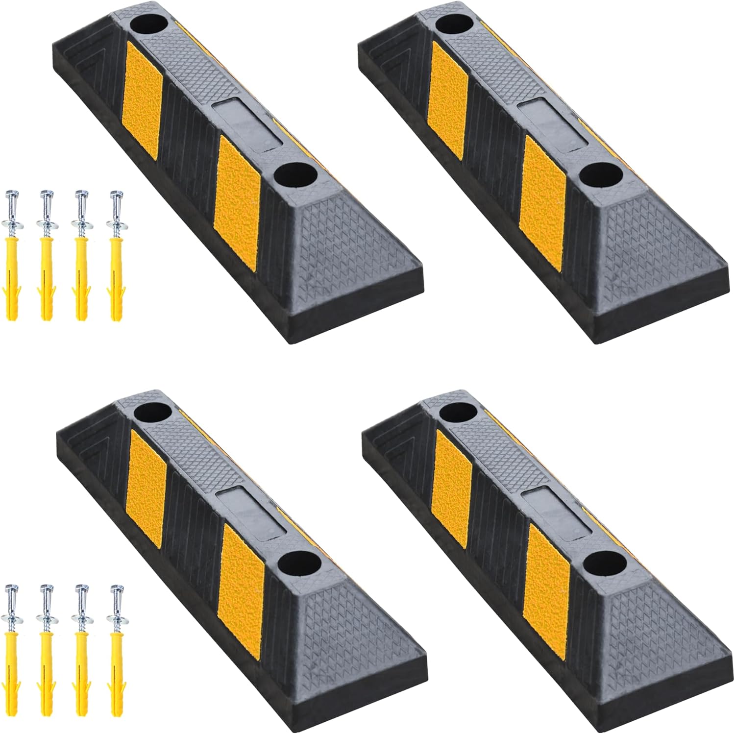 OrangeStar 21" Rubber Parking Curbs, Heavy Duty Garage Floor Wheel Stopper w/Yellow Reflective Stripe for Car, Truck, Trailer, 4 Pack