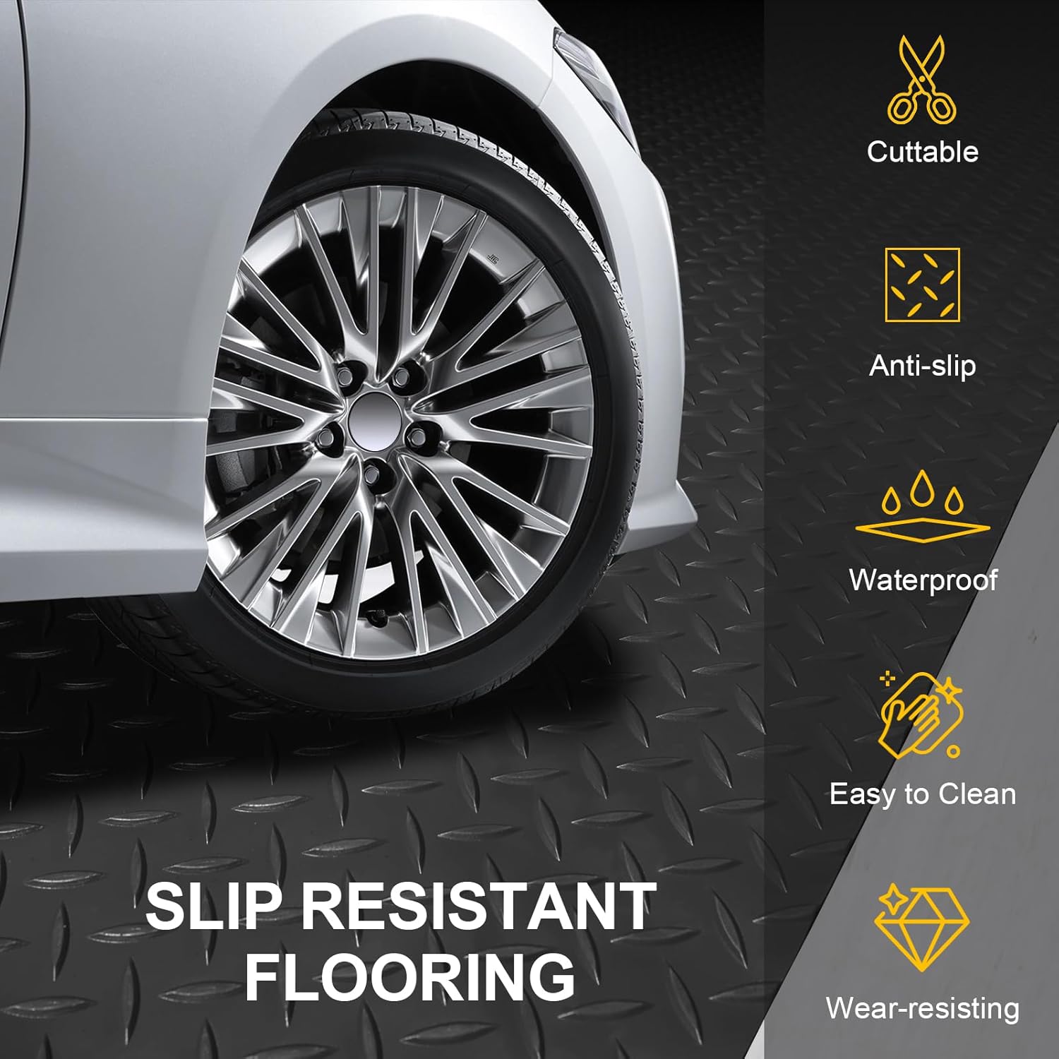 Garage Floor Mat 2.8mm Thickness PVC Garage Flooring Roll Diamond Plate Floor Mats for Garage, Workshop, Gym, Golf Cart Parking or Trailers (Black, 7.5 x 17 FT)