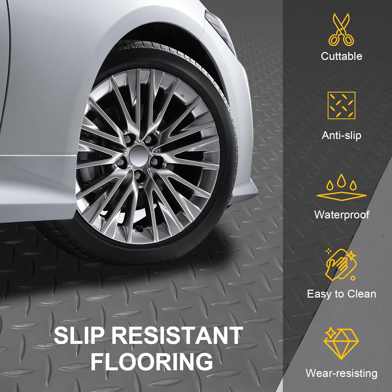 Garage Floor Mat 2.8mm Thickness PVC Garage Flooring Roll Diamond Plate Floor Mats for Garage, Workshop, Gym, Golf Cart Parking or Trailers (Grey, 7.5 x 17 FT)