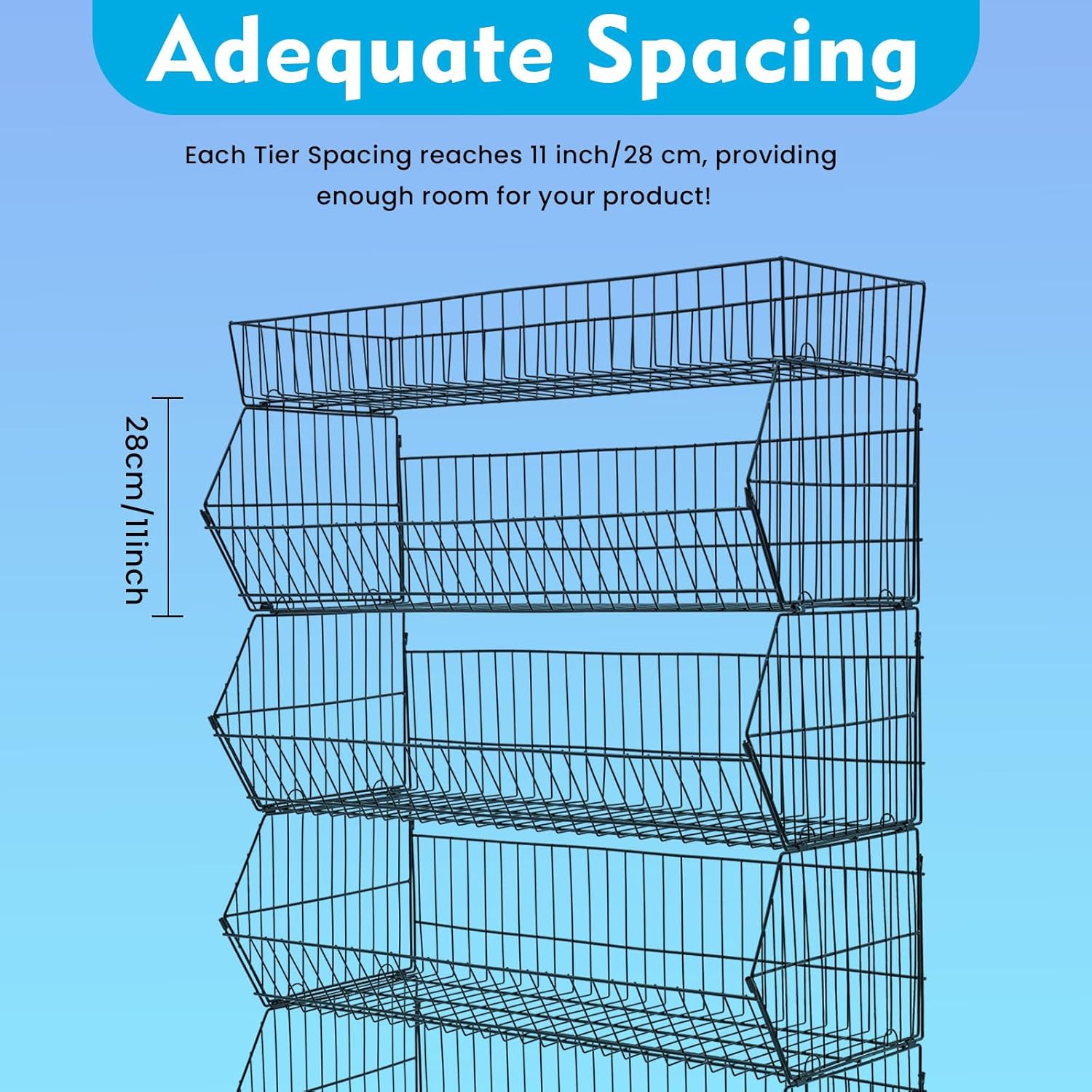 - Open Structure: The open structure with slanted baskets allows customers to see products at a glance, making them easy to select and pick up