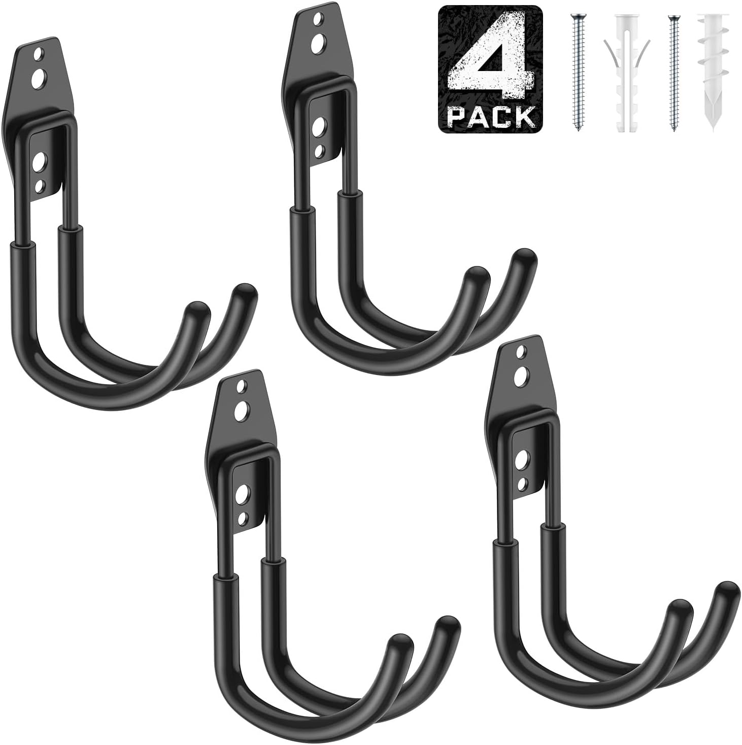 - PACKAGE INCLUDES:The set includes 4 J garage wall hooks,16 anchors and screws.From the date of your purchase