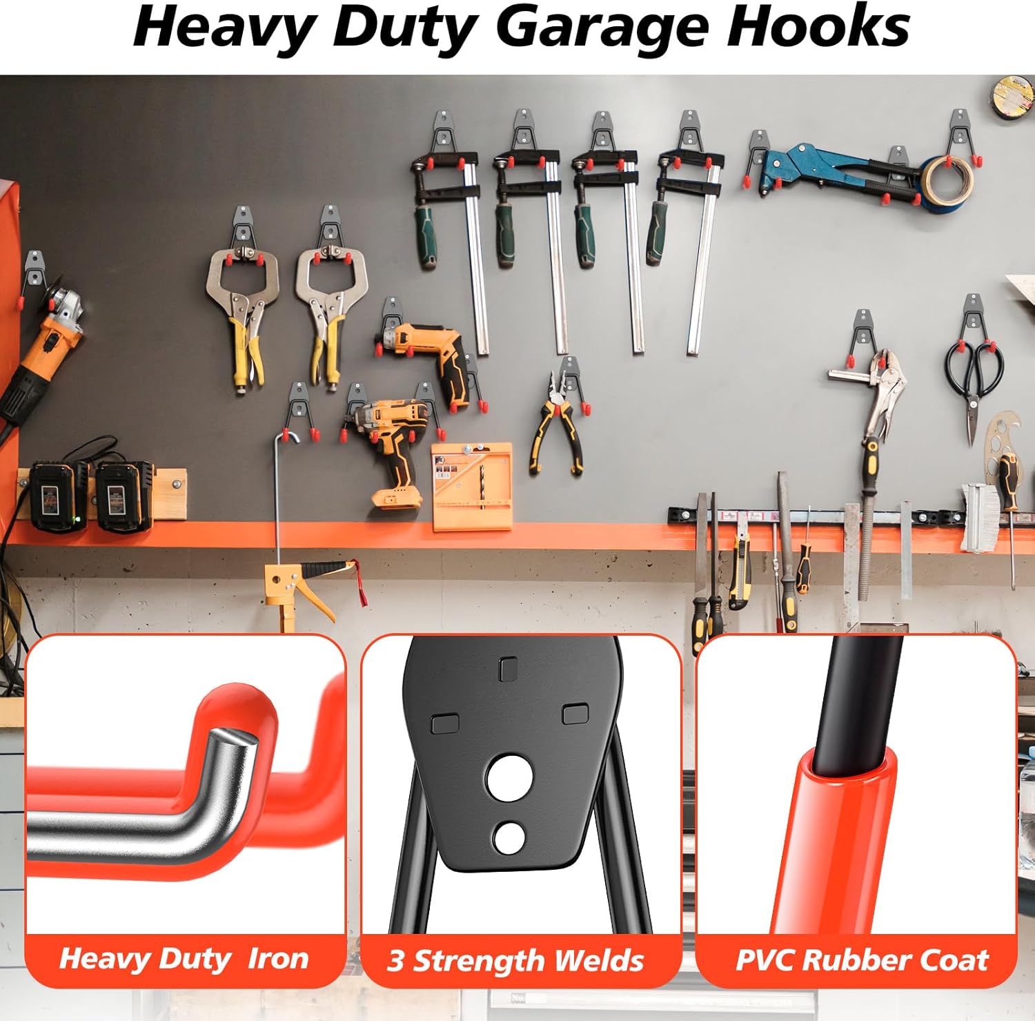 - MULTI-APPLICATION:The garage organizer hooks are ideal for storing and organizing a wide range of items, including ladders, garden tools, power tools, bikes.The Hooks can also be used in garages,workshop, shed, shop, warehouse, basement.Save more your storage space.Housewarming gift