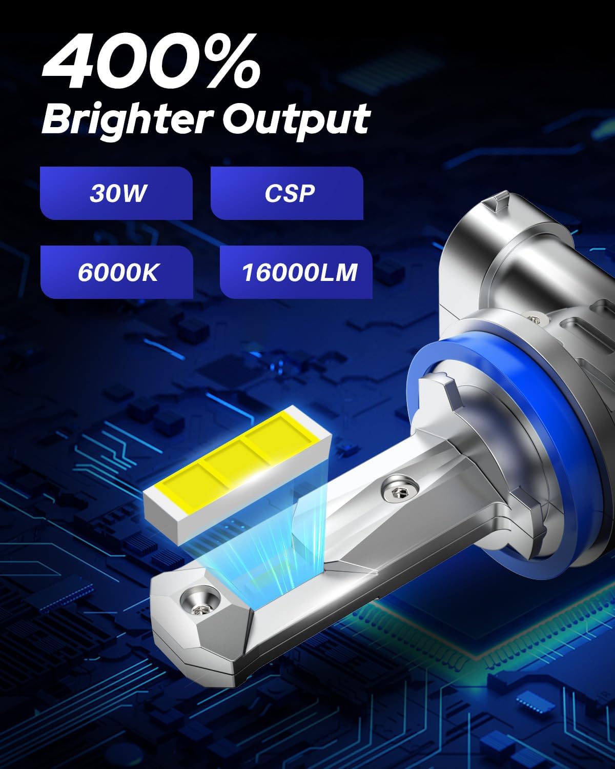 - 400% BRIGHTER - Autoone h11 led bulb with 6000k white can provide clearer visibility when driving. Make the animals or other obstacles on the road be seen in advance to ensure driving safety. Enjoy a brighter and safer driving experience