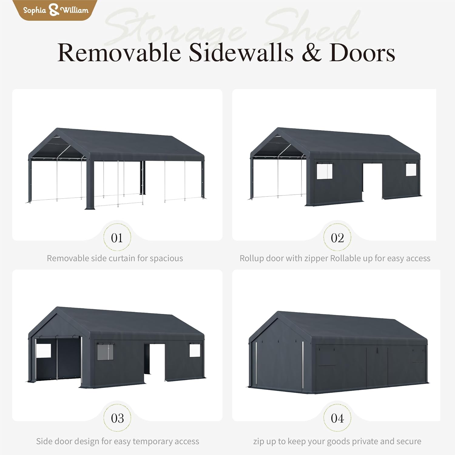 Sophia & William Carport Storage Shed 13x24 ft Portable, Heavy Duty Car Port Canopy Garage Shelter with Sidewalls and Roll Up Doors for Automobile Boat Motorcycle Bike, Gray