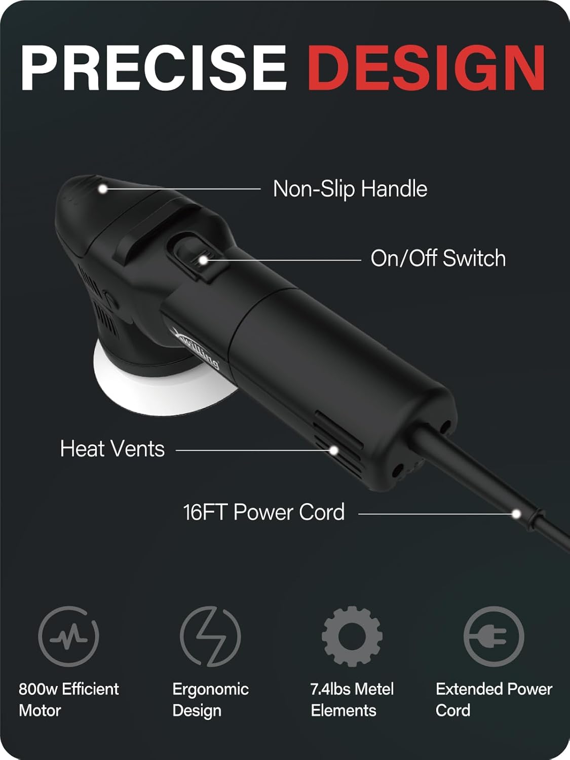 - High-Performance Polishing Machine: High-performance 800 watt motor, 8mm dual action orbital provides the power you need for your project. Carbon brushes are structurally safe, long-lasting, and easy to replace. Heat-resistant copper wire motor allows longer working time. High-performance electric polishers help increase your efficiency