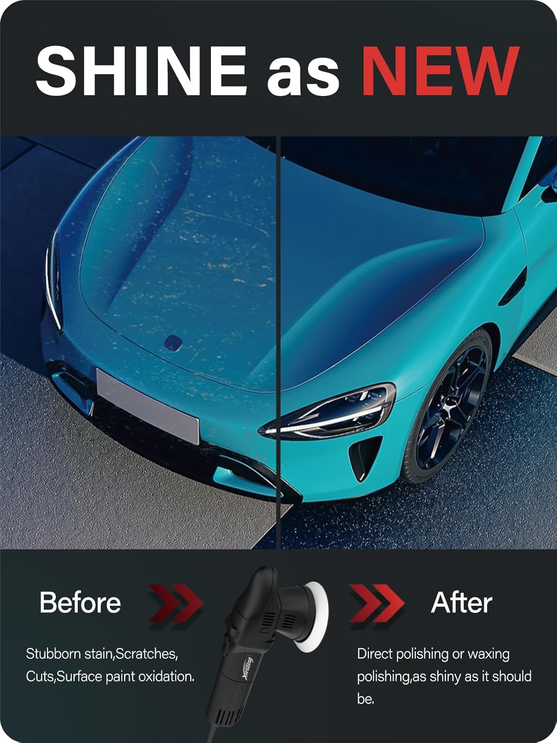 - Wide Application: The orbital random auto polisher has a wide range of applications that the polisher can use for car polishing and waxing; car detailing; floor polishing; gutter polishing; metal polishing; wood polishing; tile polishing, and so forth