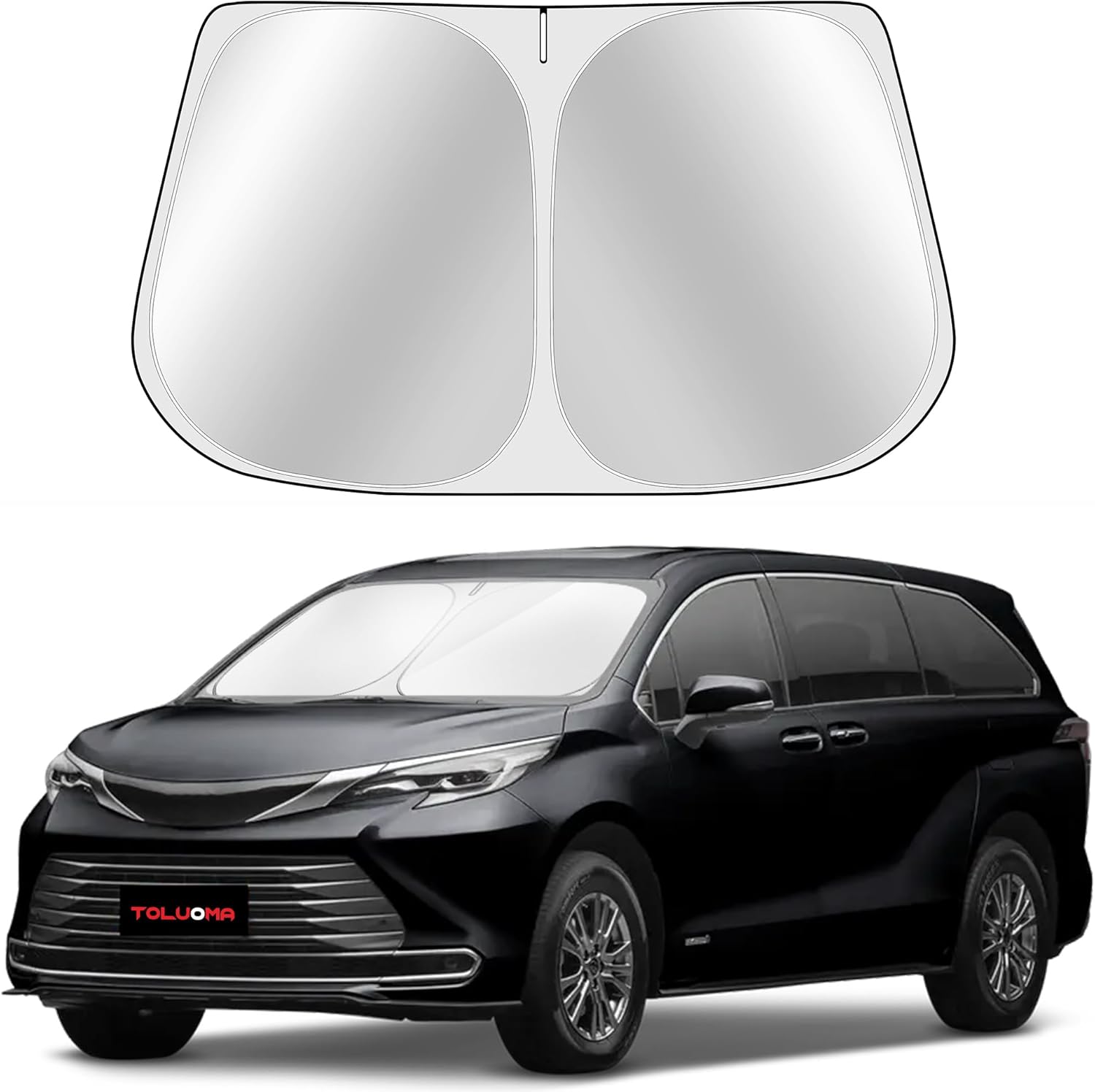 - Custom Fit: This windshield sunshade is specifically tailored for the Toyo-ta Sienna 2021 2022 2023 2024 2025, ensuring a perfect fit and full coverage without any gaps, providing ultimate protection.
