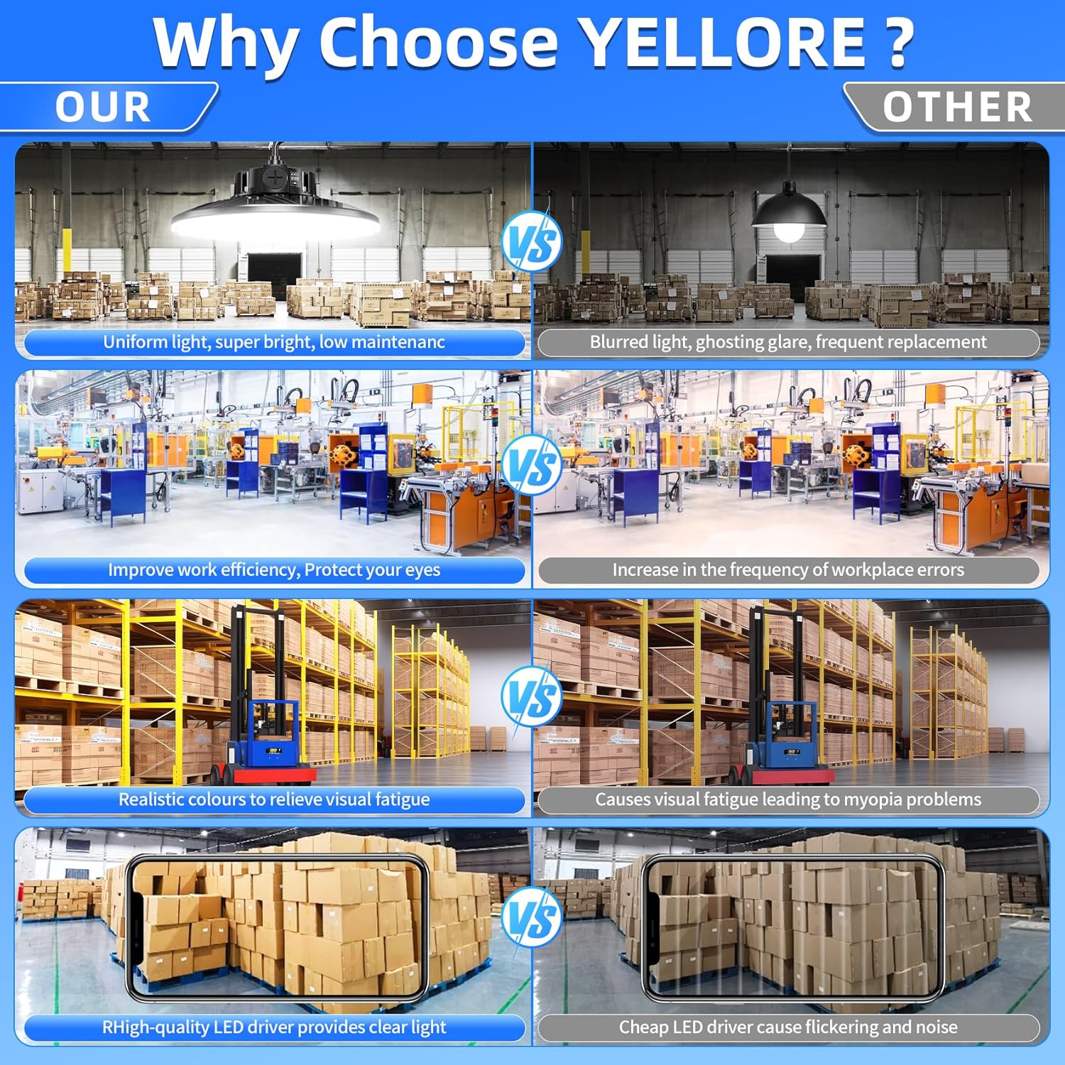 - DLC/ETL Certified & 5 Years Service: YELLORE offers itโs customers an unbelievable 5-year service! We believe that you will love this light and it will work 100% effectively. If there are any fault issues, please let YELLORE know and we will replace it within 30 days!