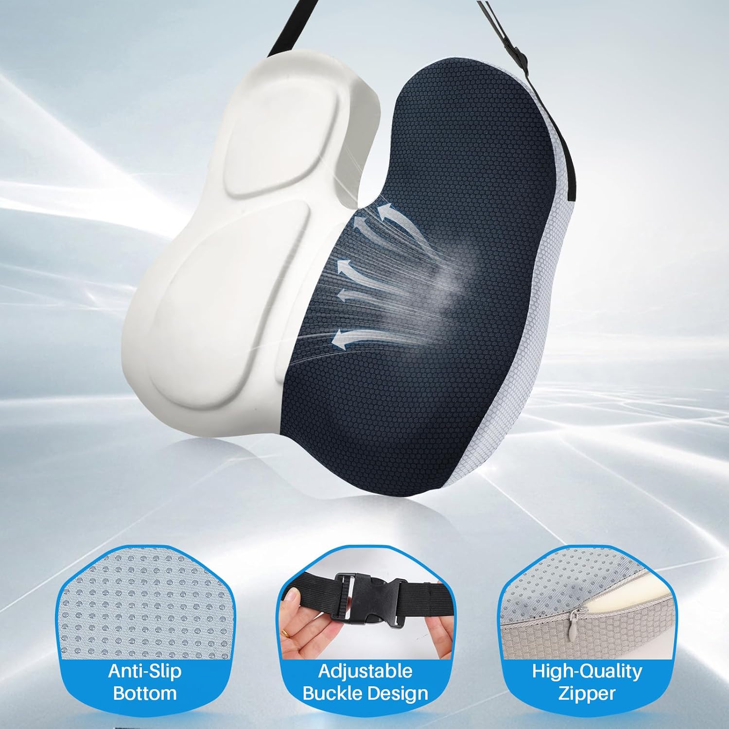 - Easy to Clean & Anti-slip Design: Our car seat cushions come with removable and machine washable covers that are easy to keep clean. Also features a double non-slip design with an adjustable fabric long back strap and non-slip rubber bottom. This ensures that the seat cushion stays securely in the optimal position for a safer ride. There is no need to worry about the seat cushion sliding or frequent adjustments while driving