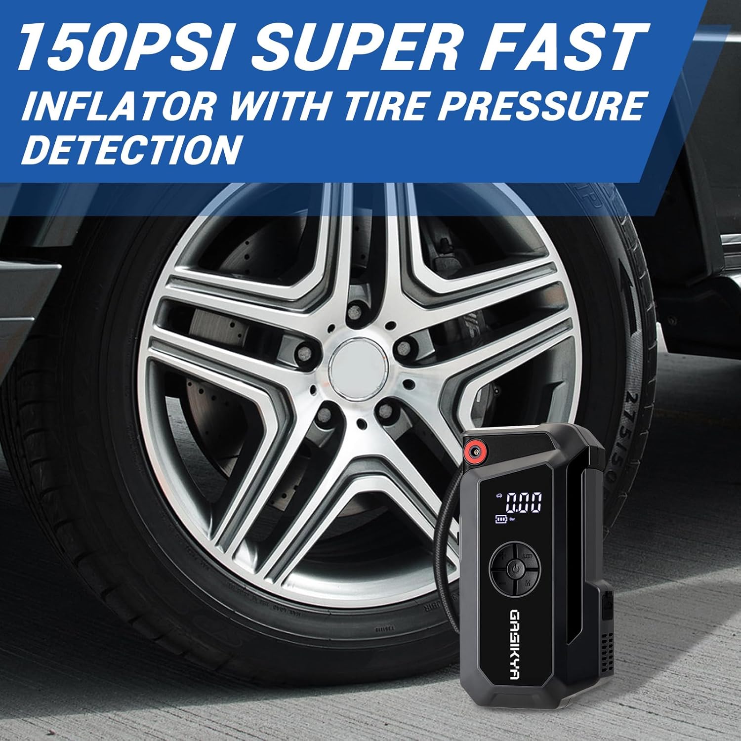 - Designed for Convenience and Safety: Compact and portable, this power supply is easy to carry and store in your vehicle. The dual-ended air hose and three-piece air nozzle set allow you to inflate your tires efficiently, without the worry of low tire pressure
