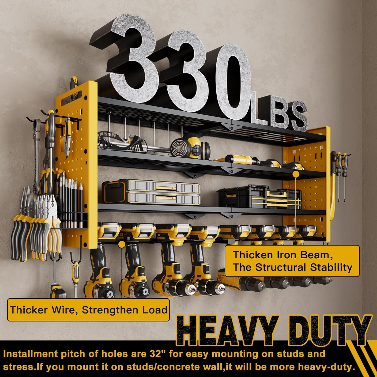 Power Tool Organizer Wall Mount,Cordless Drill Organizer,4 Layers Large Capacity Tool Rack with 8 Drill Holders(YELLOW)