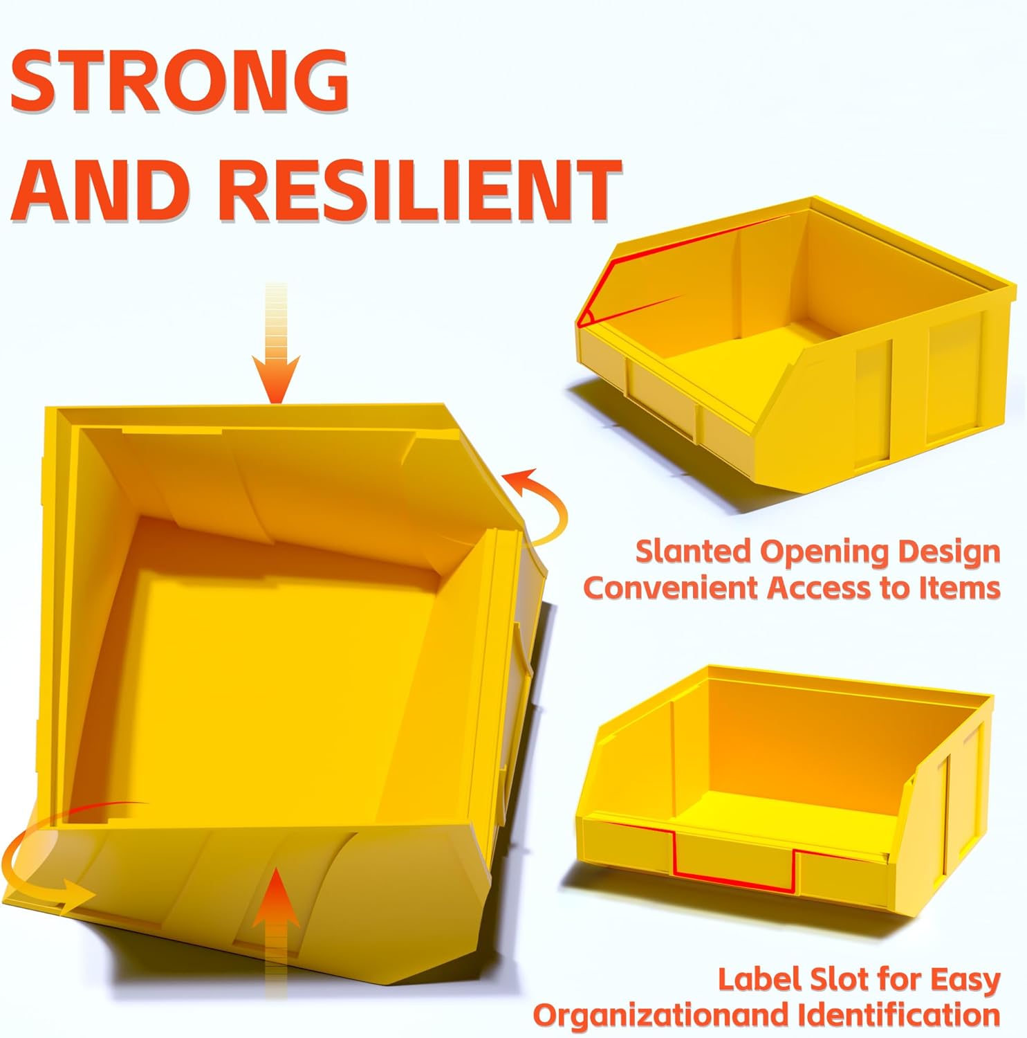 KJE 30PCS Wall Mounted Storage Bins, Plastic Tool Organizer for Garage Storage, Screws, Nuts, Bolts, Small Hardware Parts -Black, Yellow
