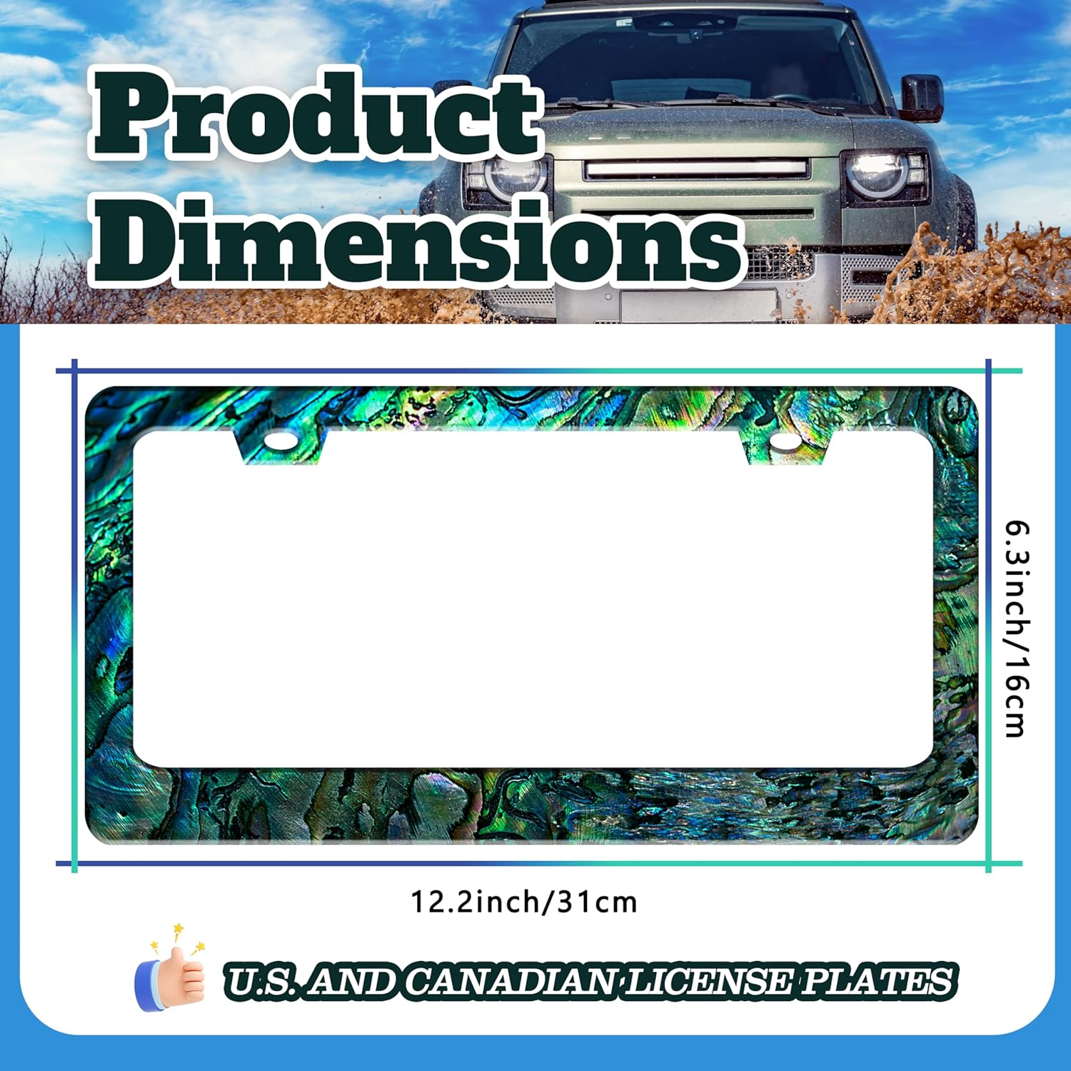 - 6.3 X 12.2 INCHES: Suitable for most standard size U.S. and Canadian license plates, can be applied to front or rear license plates, universal style. Add points to the beauty of your car!