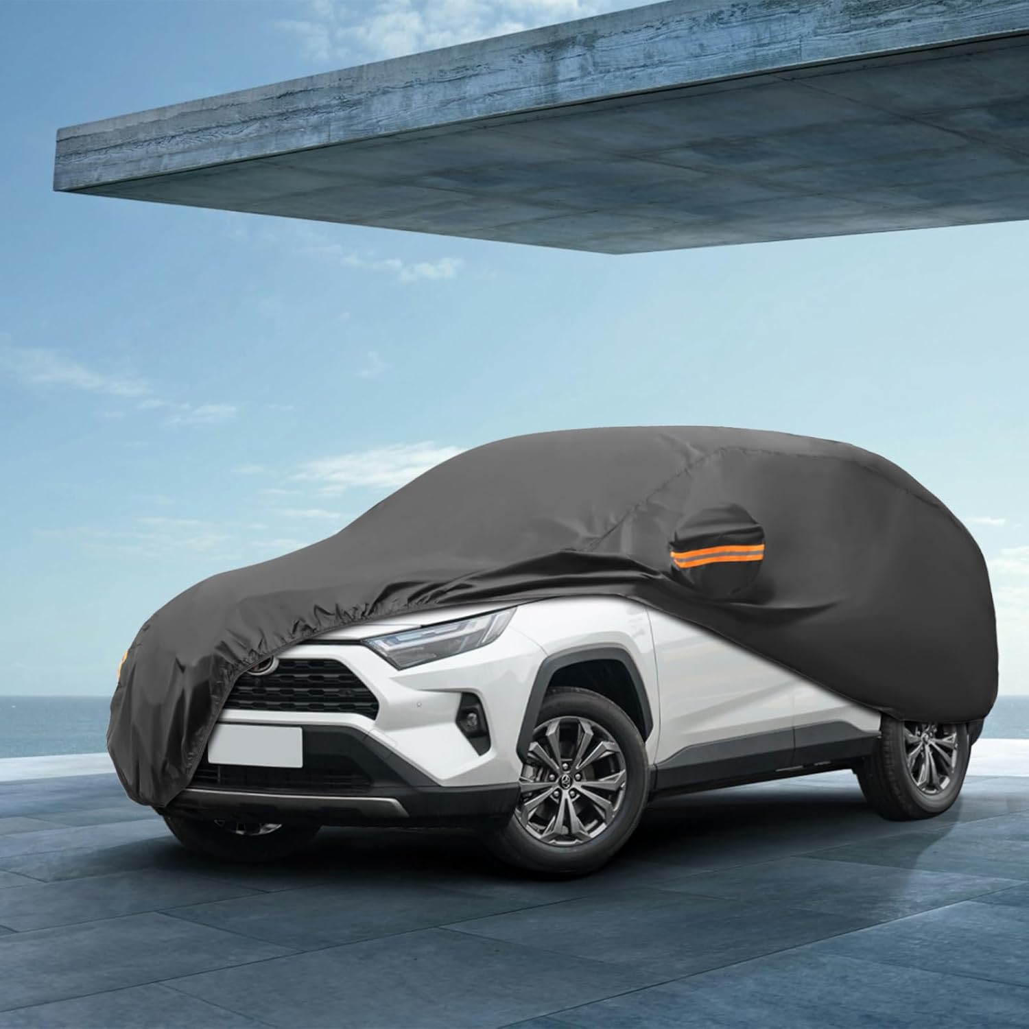 MORNYRAY Compatible with Toyota RAV4,Car Cover Outdoor Waterproof Sun Rain Snow Hail Protection with Driver Door Zipper (Black, Custom Fit Toyota RAV4)