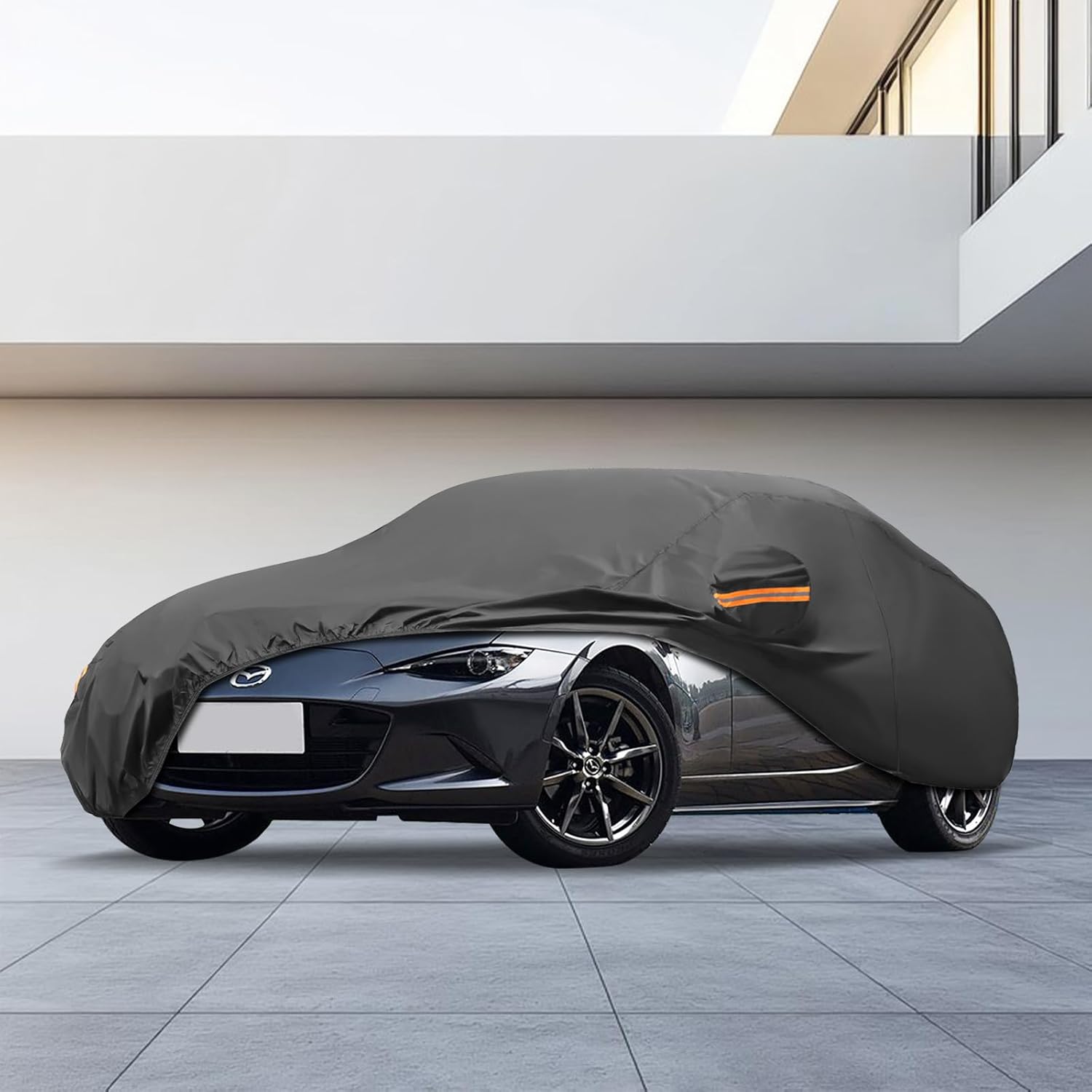 MORNYRAY Compatible with Mazda MX-5,Car Cover Outdoor Waterproof Sun Rain Snow Hail Protection with Driver Door Zipper (Black, Custom Fit for Mazda MX-5)