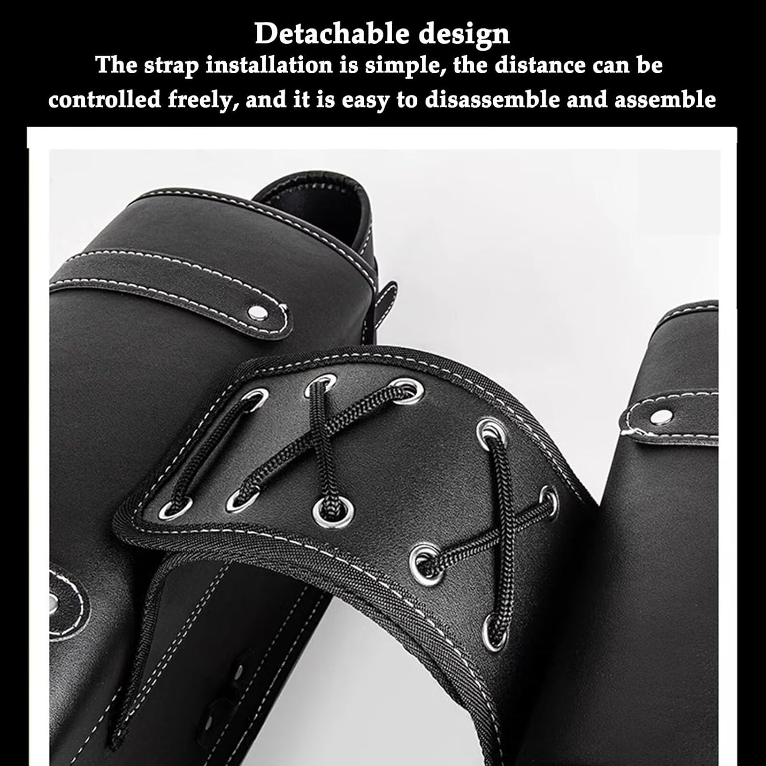 - 1. Detachable design: motorcycle saddle bag easy installation of straps, control distance at will, easy to disassemble and assemble, more convenient for travel, making the monotonous motorcycle more handsome