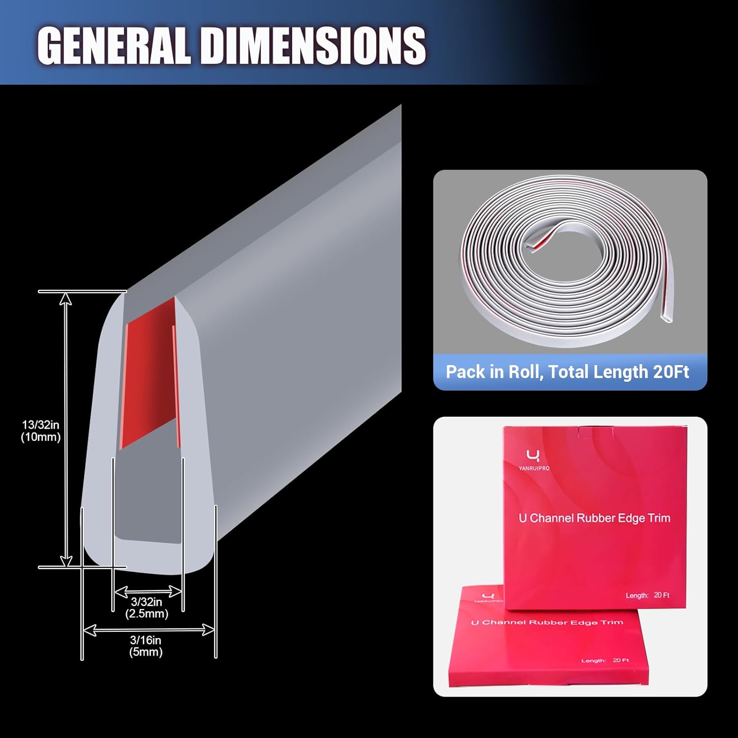 - High Quality EPDM Rubber: Durable and not easy to age, extremely hard wearing and washable. EPDM rubber material edge trim is not easily broken down by ultraviolet light and ozone, has better thermal stability, radiation resistance and weather resistance.