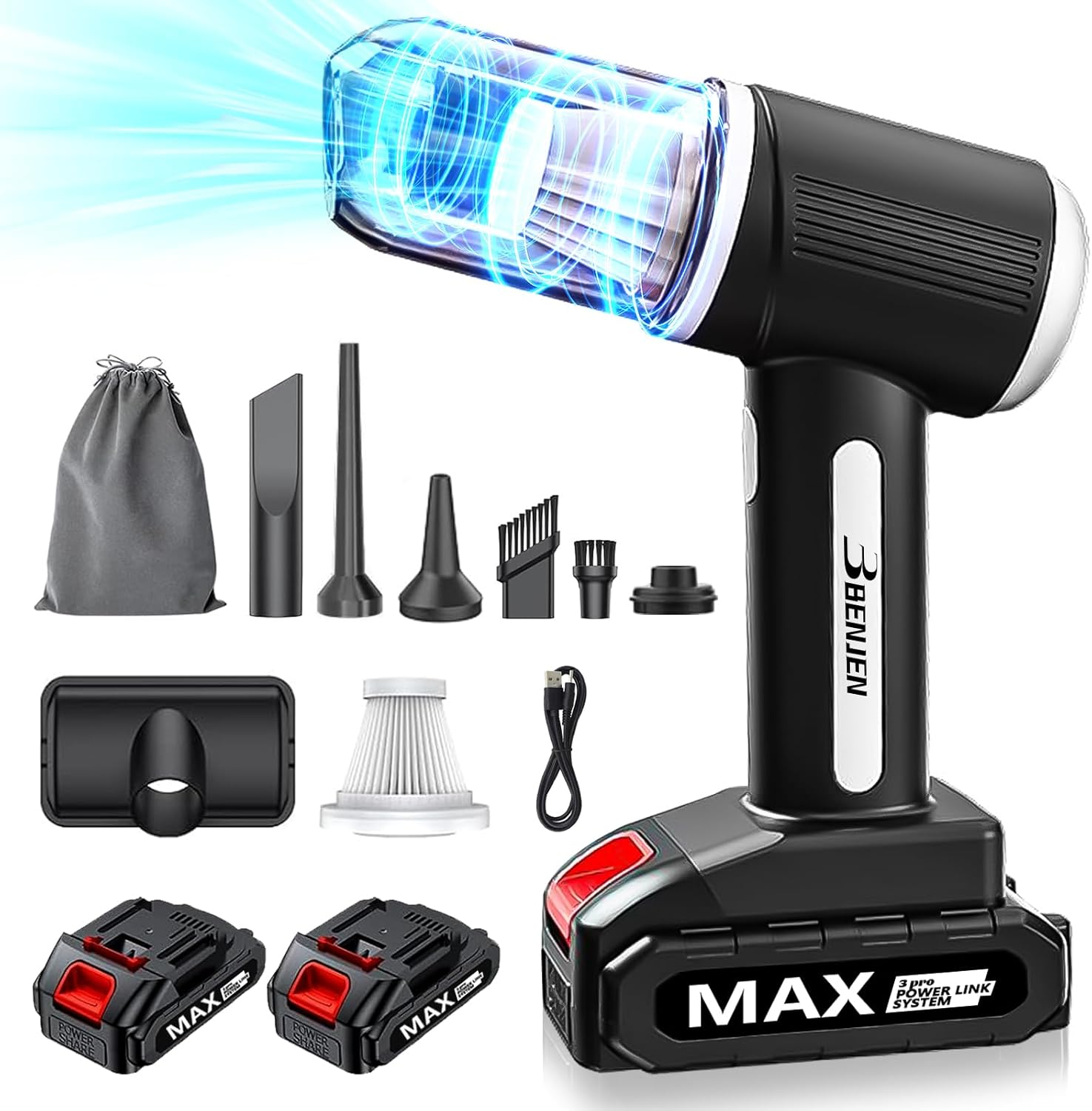 - Handheld and Wireless: The BENJEN mini car vacuum cleaner features a handheld and wireless design, allowing you to easily handle sand, dust, and debris from every corner of the car with one hand. We provide a storage box that is ready to use, making it convenient for you to use and store