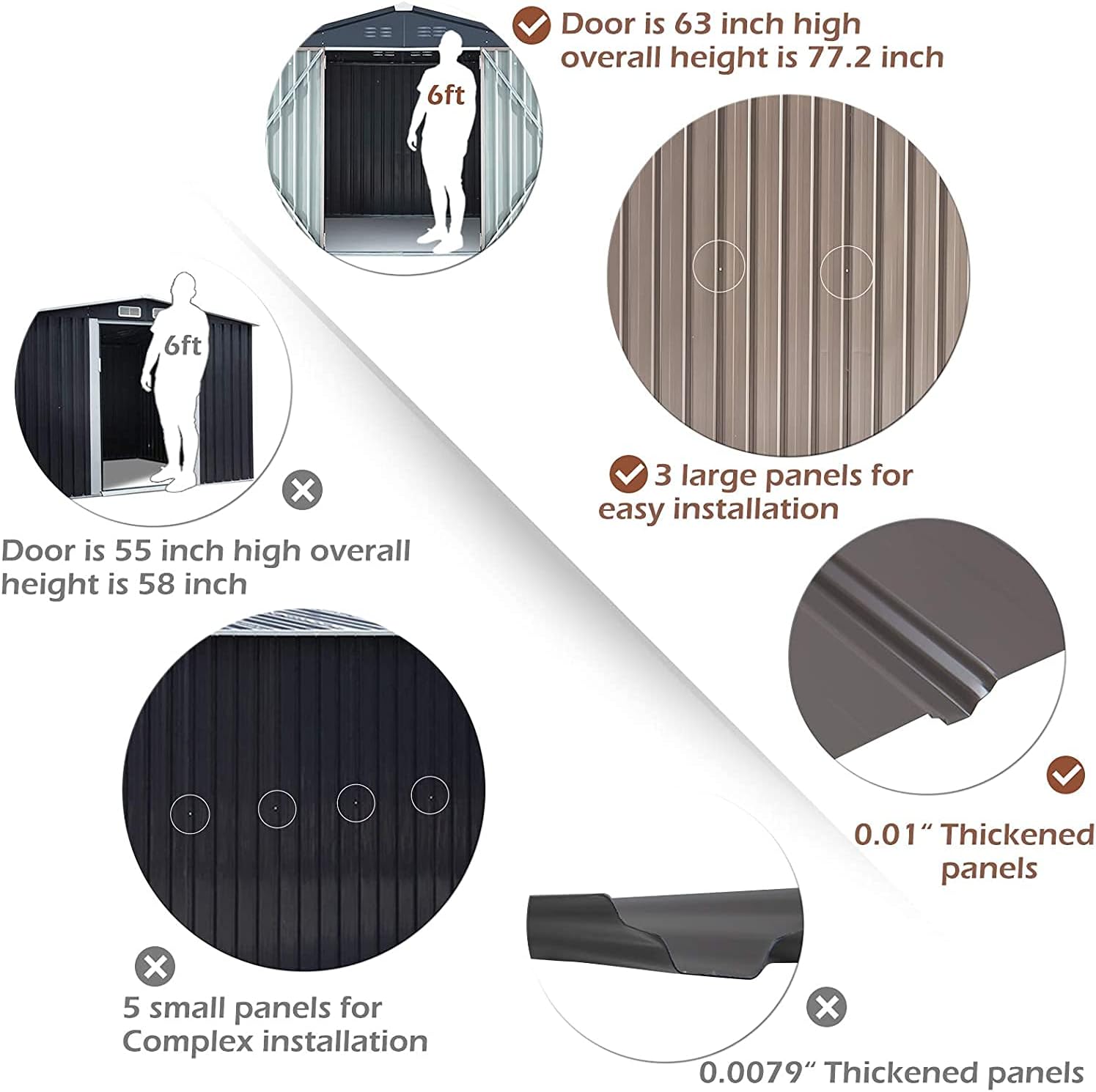 U-MAX 6x6 Storage Sheds & Outdoor Storage, Small Outdoor Storage Garden Outside Shed kit, Galvanized Metal Utility Shed for Backyard, Patio and Lawn
