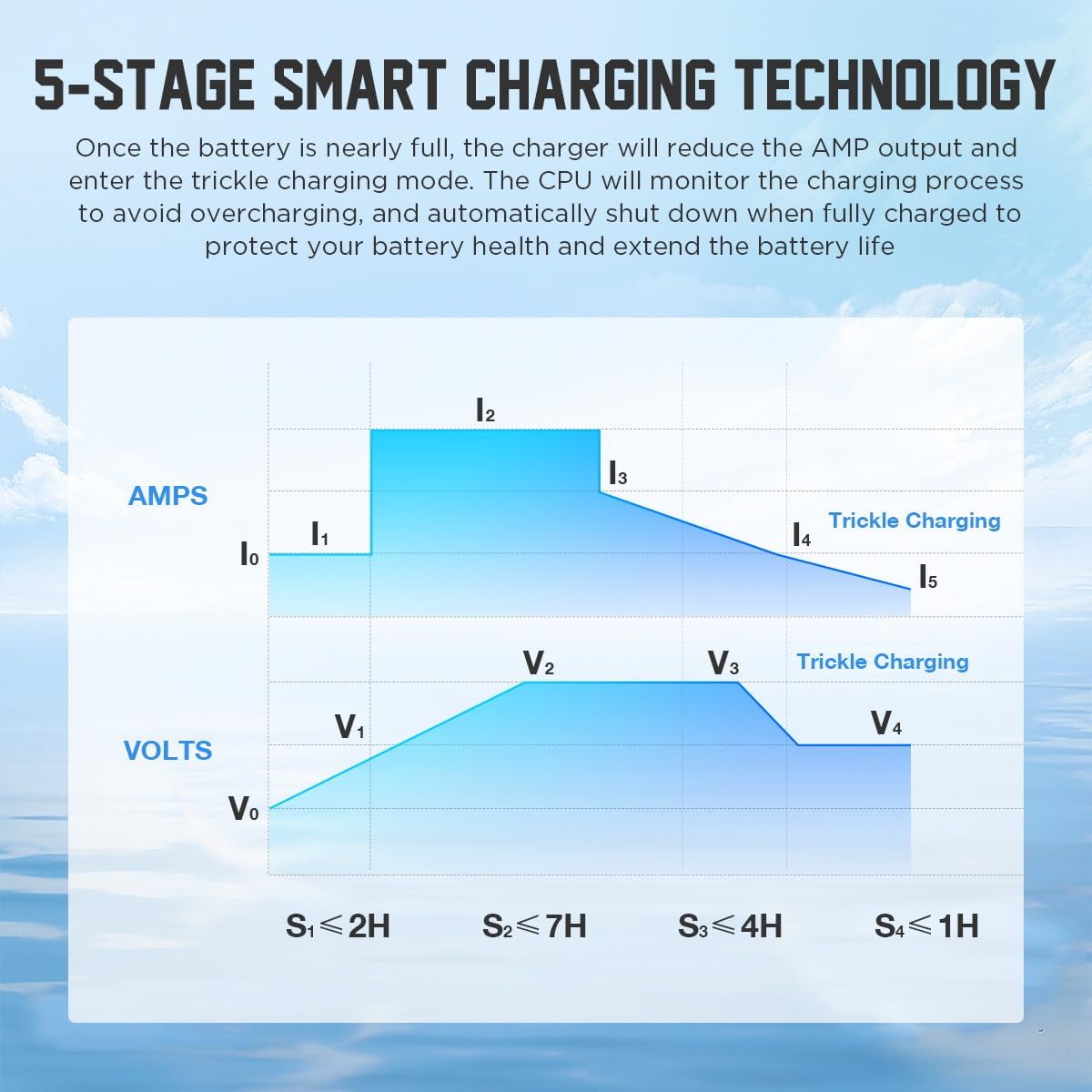 - 【48V 18A EZGO Golf Cart Fast Charger】Our 48V ezgo charger provides 18A fast charging speed, which fully charge a 100AH lead-acid battery in about 6 hours, saving 4 hours than a 10A speed charger.It uses advanced 5-stage smart charging technology.When battery is nearly full, it will reduce AMP output and enters trickle charging mode.The CPU will monitor the charging process to avoid overcharging and automatically shut down when fully charged to protect your battery health and extend battery life.