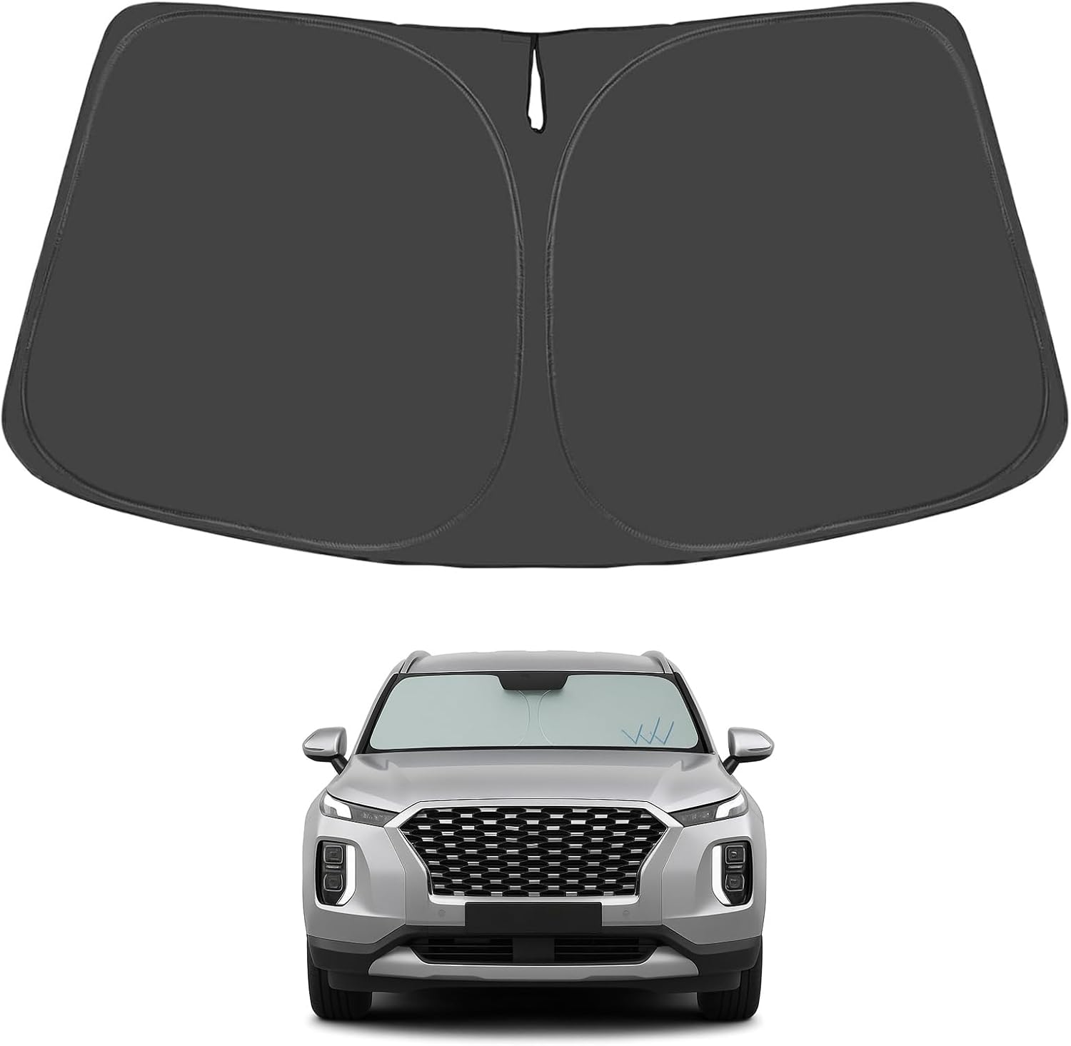 - Certified Sustainable. DESIGNED IN USA!!! Custom Design: The front windshield shade has been custom cut specifically for Hyundai Palisade. Precise fit design and Reinforced steel rings make a precise and secure fit to the window, no need to use suction cups to hold it in place. It won't sag or collapse like other car heat shields. Fits for Hyundai Palisade 2025 2024 2023 2022 2021 2020.