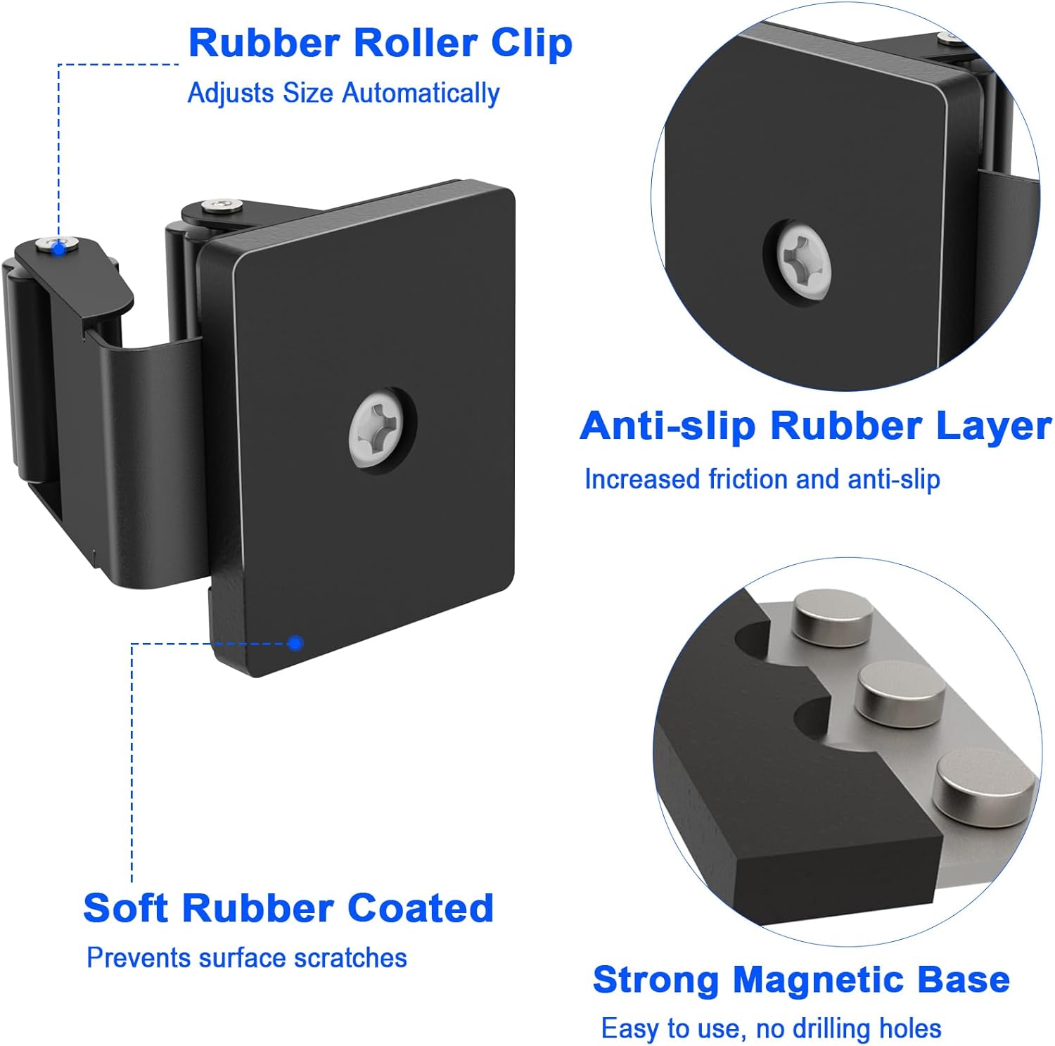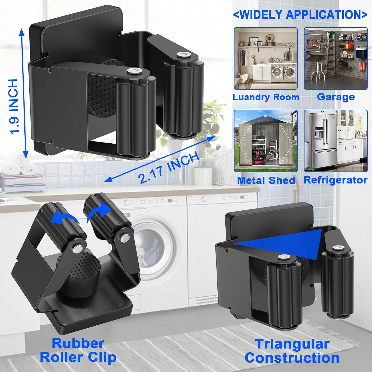 - 【Strong Magnetic Broom Holder】 Designed with a triangular structure, the broom holder features silicone petal-shaped rollers for a firm grip. It automatically adjusts to the handle's size, ensuring a secure hold