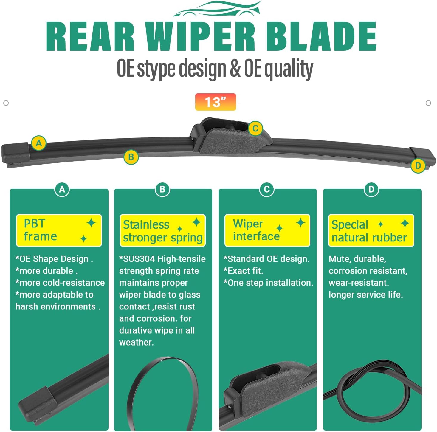 - [Super Clear Wipers]: High-quality rubber blade ensures efficient and streak-free wiping.